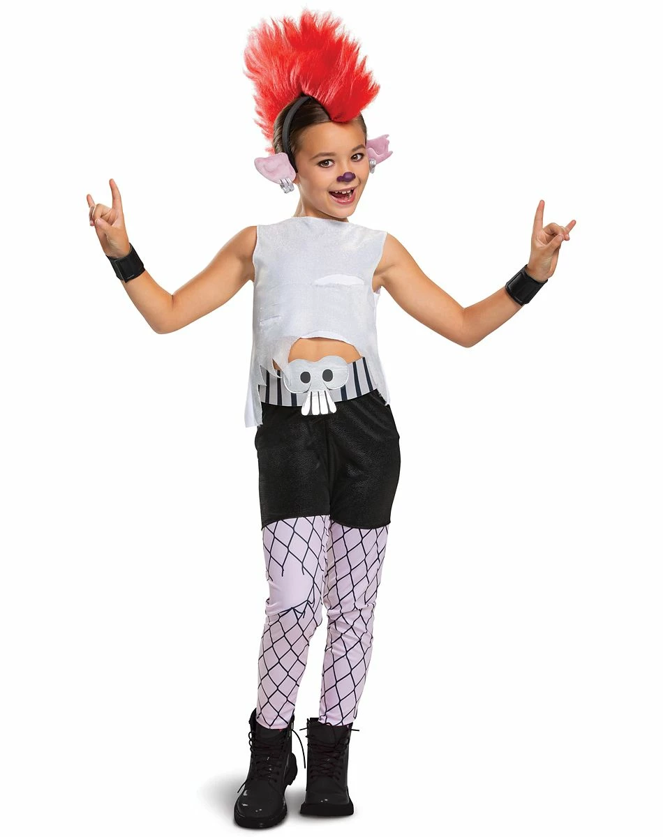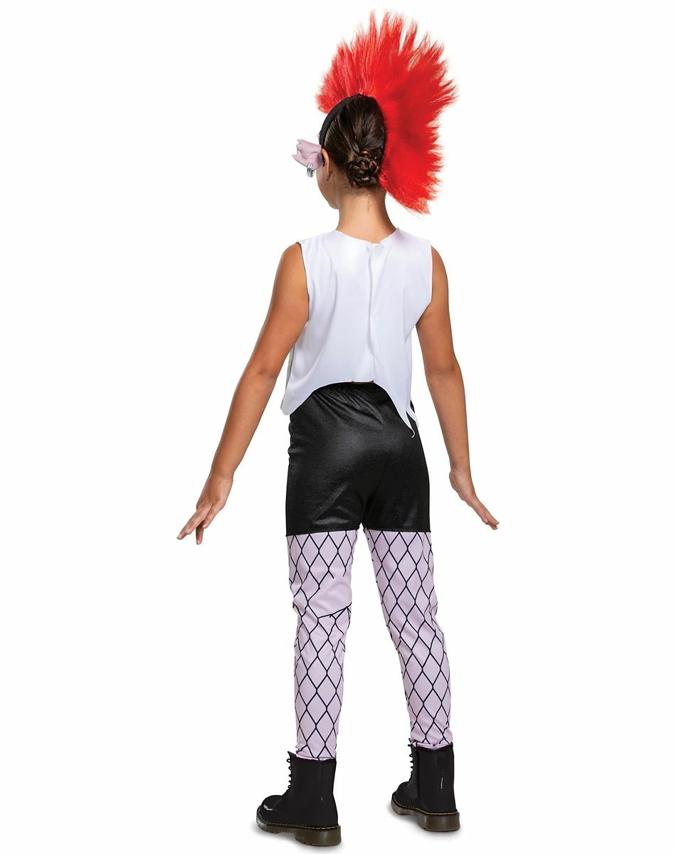 Be a little rebellious as the Queen of Rock when you dress up in this Barb costume! Perfect for any Trolls fans, this costume will have you ready to rock totally hard with its striking white shirt, skull belt, black shorts, black and white pants, wristbands, and, of course, red mohawk.