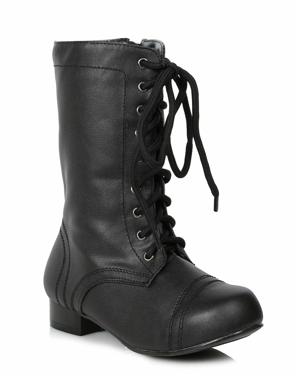 Kick butt when you create or complete your costume with these awesome and authentic looking child’s lace-up black Combat boots.