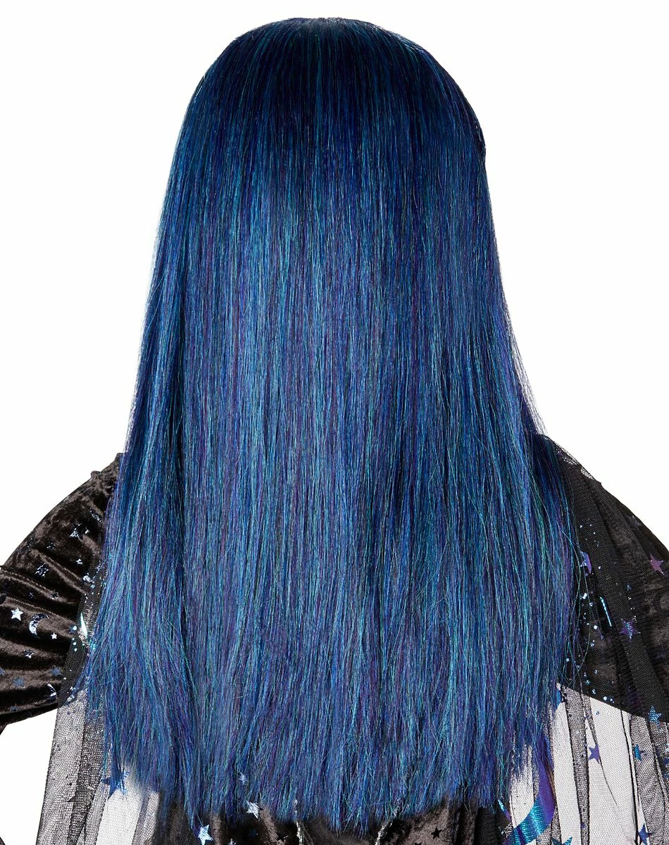 Perfect your spooky style with this long, witchy wig! This kids’ celestial witch wig features long, straight strands in oil slick-inspired hues.