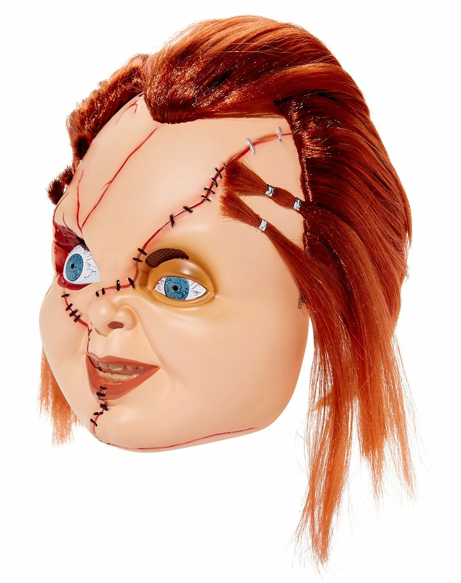You’ll be a walking Chucky doll in this full mask! This kids’ Chucky mask features fiery red hair and bone-chilling facial scars. An elastic band keeps this scary mask secure while you’re up to no good.