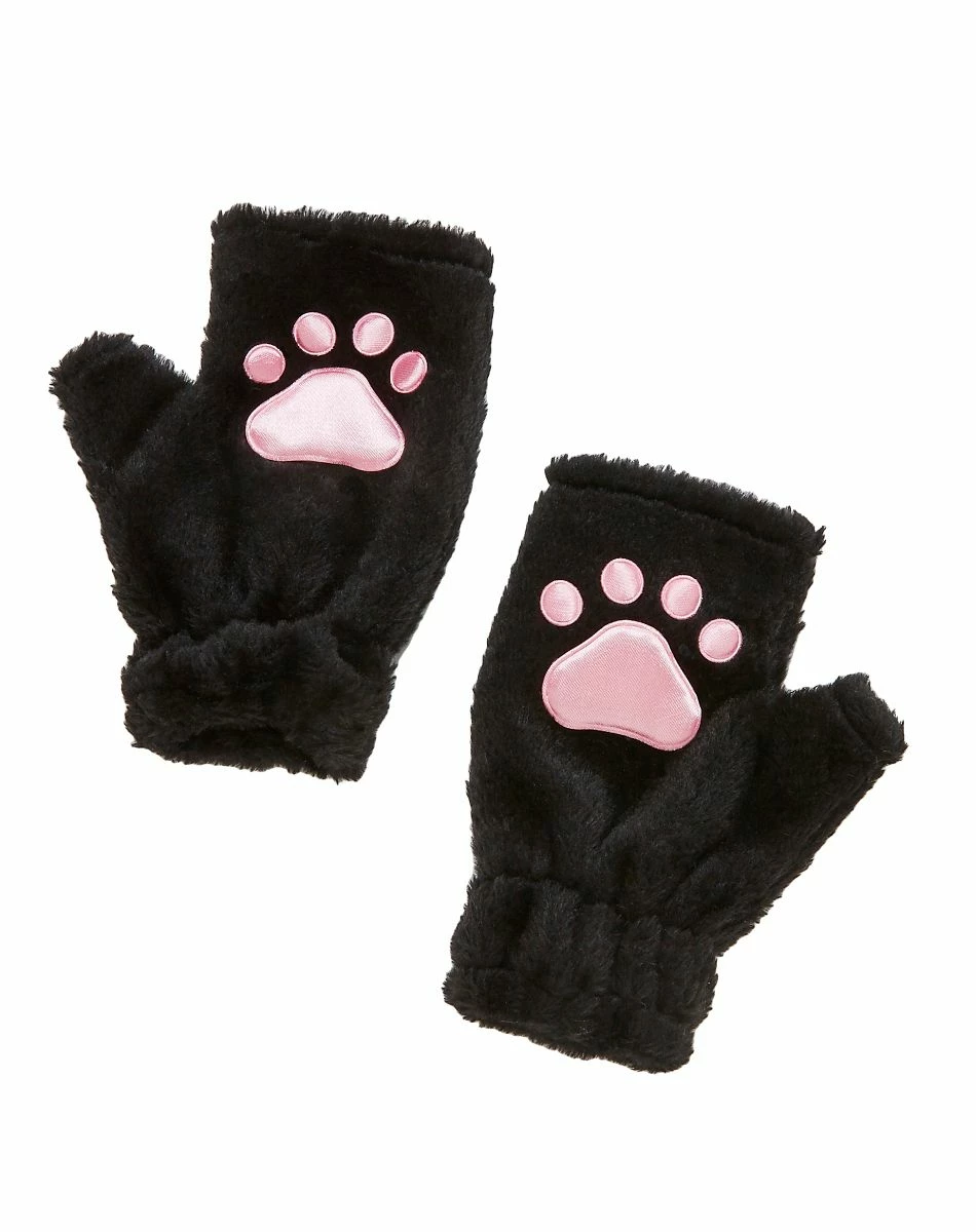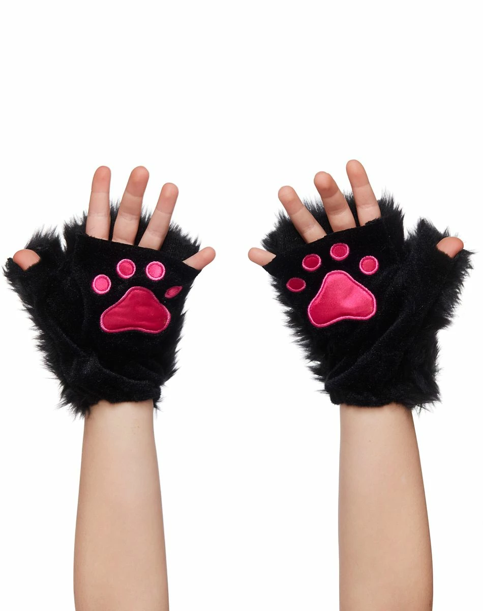 Featuring pink paw shapes on the palms, these black kitty gloves are the purrfect accessory to any costume!