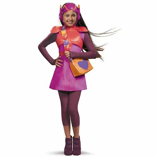 Optimism is always the best attitude, and Honey Lemon brings that to the Big Hero 6 team! Show your love for her sweetness in this officially licensed Big Hero 6 Honey Lemon Deluxe Girls Costume, which includes a purple and red armor style dress to prepare you for any fight. This costume also includes a purple and orange helmet and detachable red chest and shoulder pads that will protect you while you’re firing chem-balls from your adorable purse! Like Honey Lemon, you’ll be ready to take a ton of pictures this Halloween.