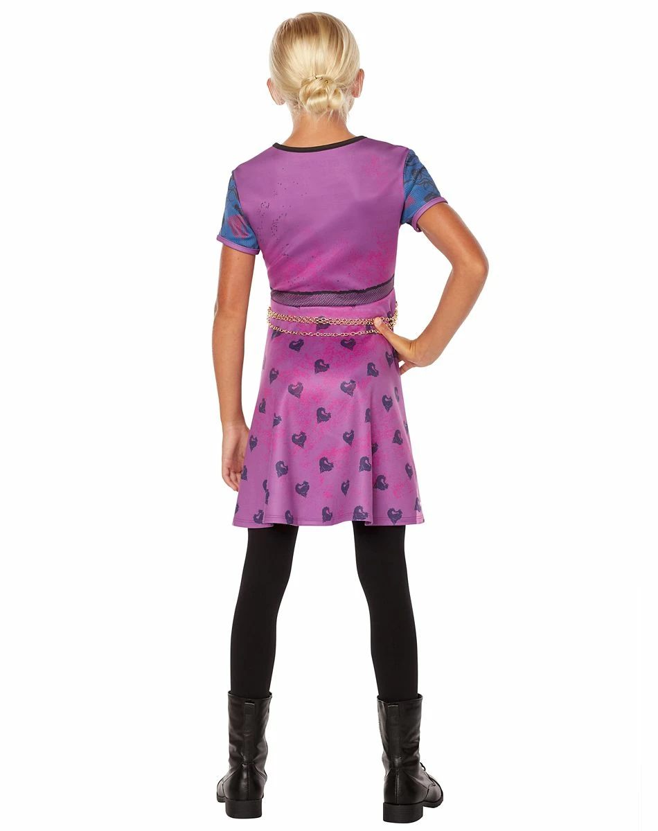 Those other princesses got nothing on you! With this officially licensed Mal Dress on you’ll look just like your favorite character from Descendants 3 this Halloween. This beautiful purple dress features a gold chain across the hip with dragon heart detailing and is sure to have you looking good enough to make Maleficent proud!