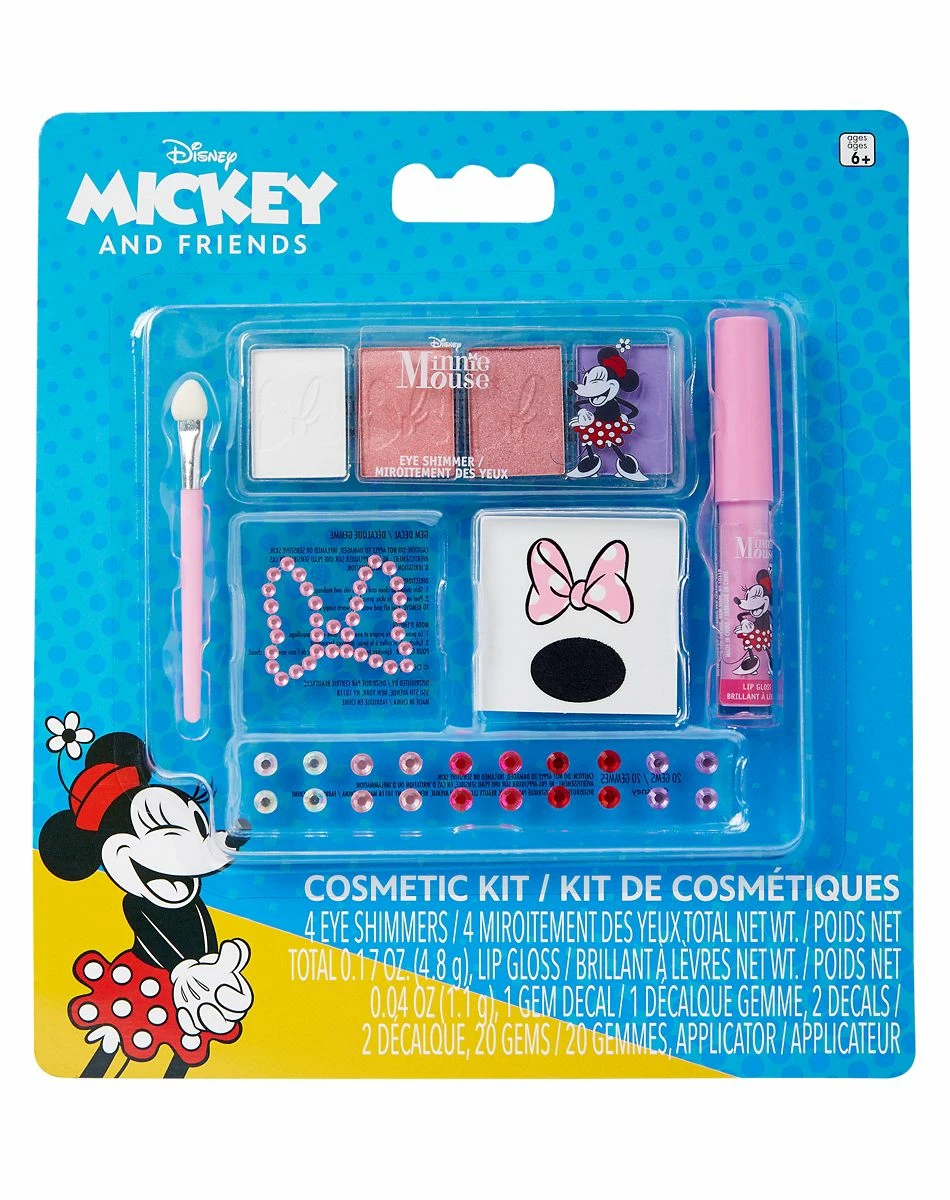 Perfect your Minnie Mouse look with this officially licensed makeup kit! This charming makeup kit includes shimmering gem decals, bow decals, a 4-color eyeshadow palette, a shimmer stick, a tube of shiny lip gloss, and a makeup applicator.