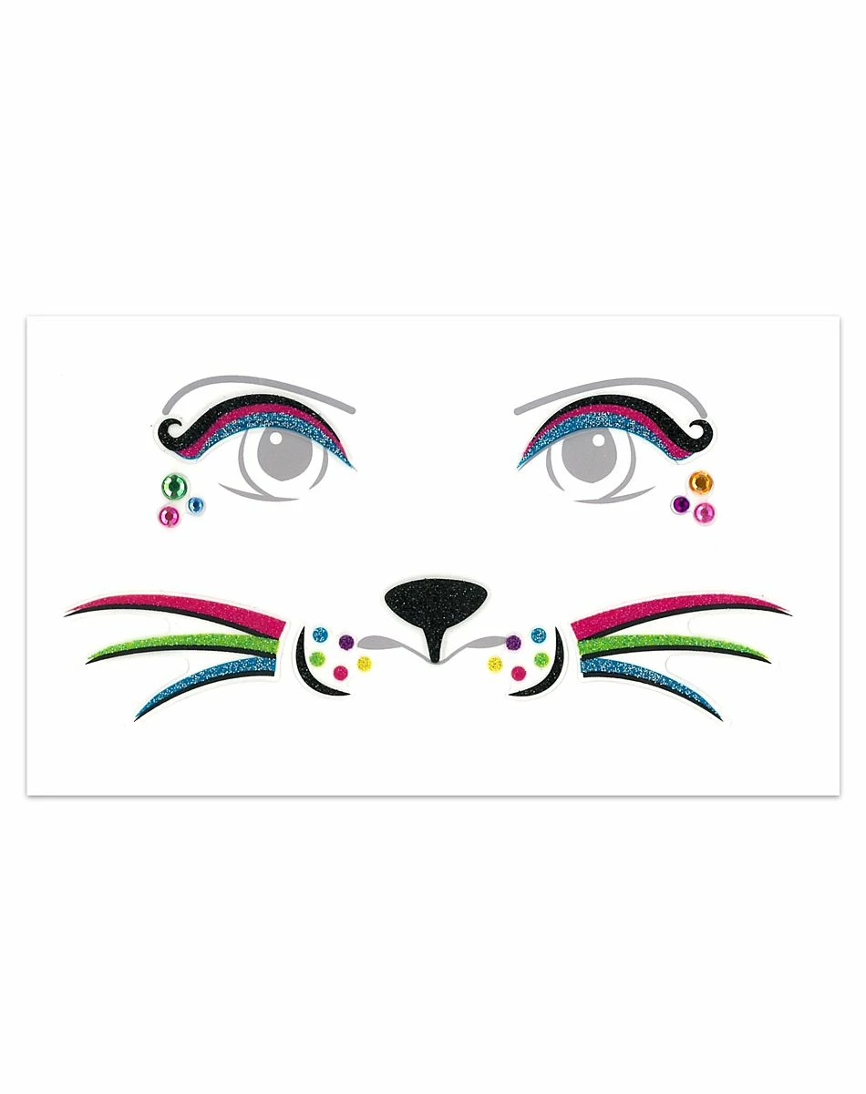Meow! This is a cat like no other. With rainbow whiskers and bright colors around the eyes, your child will not blend in with the crowd with this kids’ Rainbow Cat Face Decal. It’s time for the paws to come out this Halloween night!