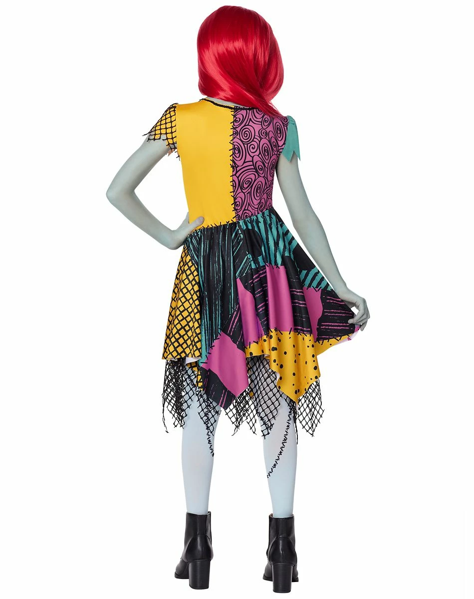 Kids, dress up as your favorite movie character in this official The Nightmare Before Christmas Sally Costume! This colorful costume brings Sally to life with her familiar multi-colored dress and high quality wig. You’ll be instantly recognizable as this popular ragdoll this Halloween.