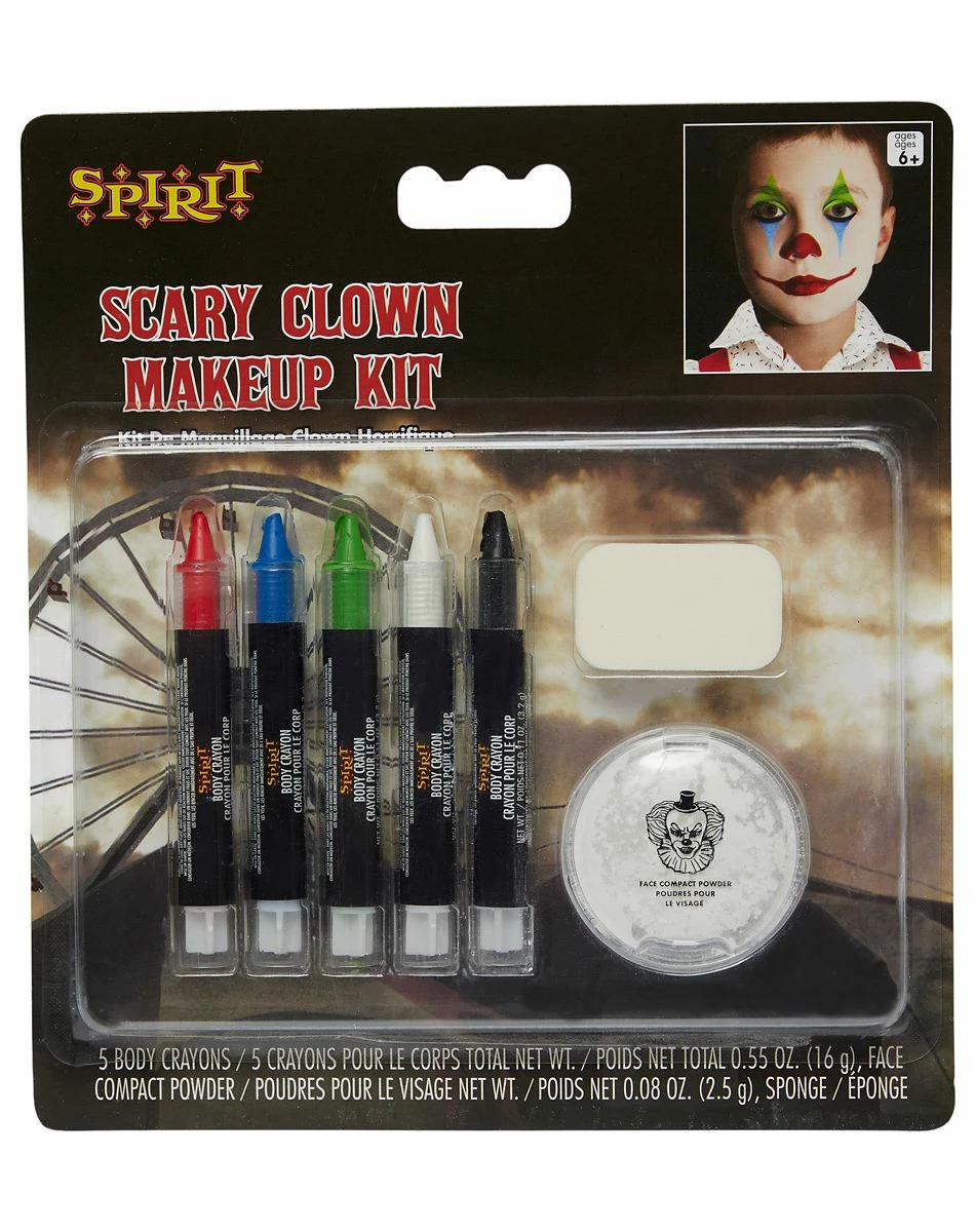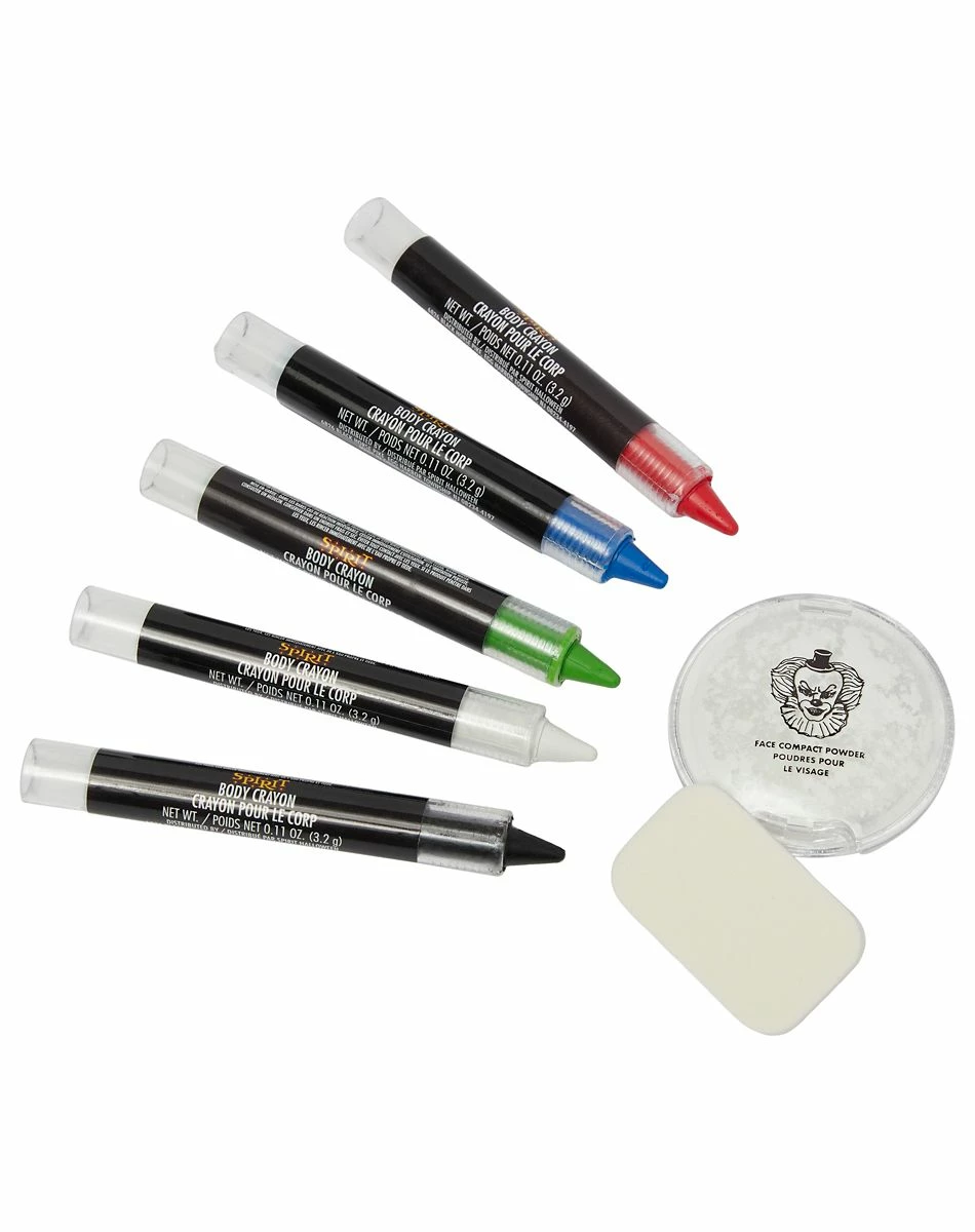 Become the creepiest clown in town when you get this Kids Scary Clown Makeup Kit! This kit comes with five makeup crayons, a face compact powder, and a makeup sponge, making it easy to complete your freaky look this Halloween.