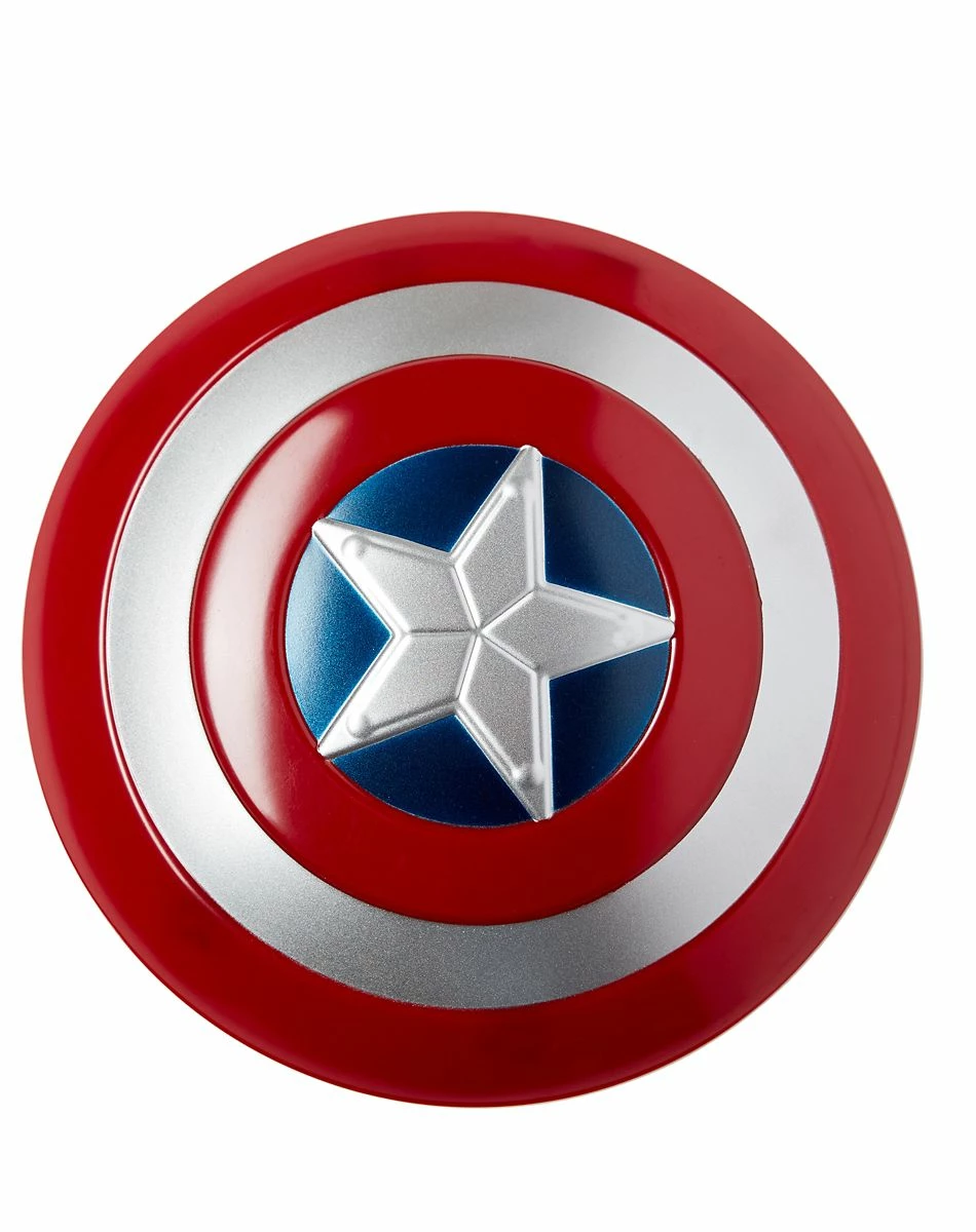 Your child’s Captain America costume isn’t complete without the Officially Licensed Child Captain America Shield. This red and white striped shield features a blue bulls-eye center with a large white star. Black flexible, adjustable arm and shoulder straps allow your child to wear this comfortably without having to carry the shield while trick or treating.