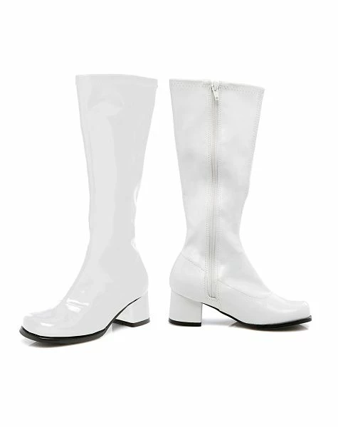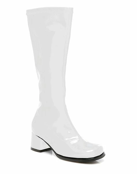 - Disco, mod, retro; parade dress or snow queen – complete your costume with a pair of white stretch patent Go Go boots and kick up some fun!