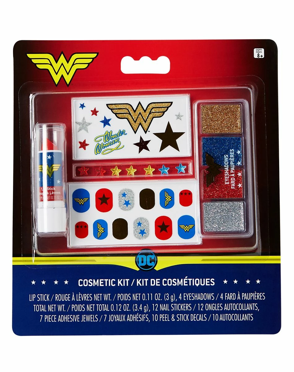 Capture the strength and beauty of Wonder Woman with this officially licensed DC Comics Kids Wonder Woman Makeup Kit! This makeup kit has everything from Wonder Woman’s signature lipstick to nail stickers adorned with official Wonder Woman logos. Customize your wonderful look with this makeup kit!