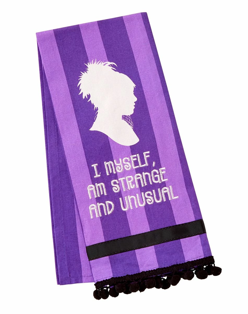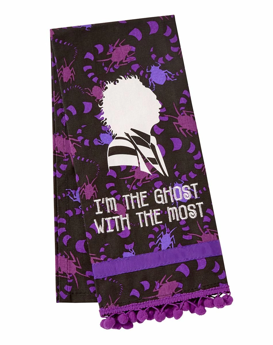 Relive some of your favorite movie scenes with these two official Beetlejuice dishtowels! These purple and black dishtowels each feature a Beetlejuice quote, with one from Lydia (“I myself, am strange and unusual”) and one from Beetlejuice (“I’m the ghost with the most”). Give your kitchen an extra dose of Beetlejuice all year long when you use these.