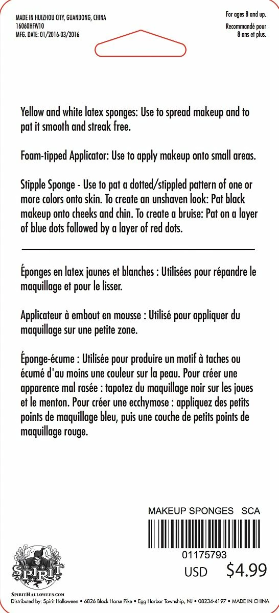 Create your crazy character face using this Makeup Sponge Kit. Cover your face in color any way you want!