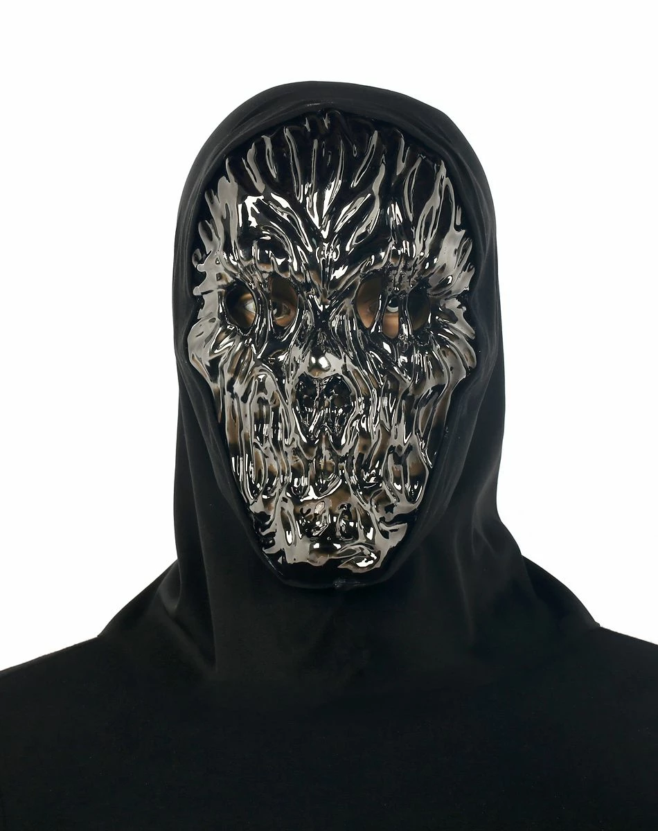 Who is THAT? This ghastly ghoul mask features a metallic face covering and a dark hood. You’ll be totally unrecognizable in this creepy mask!