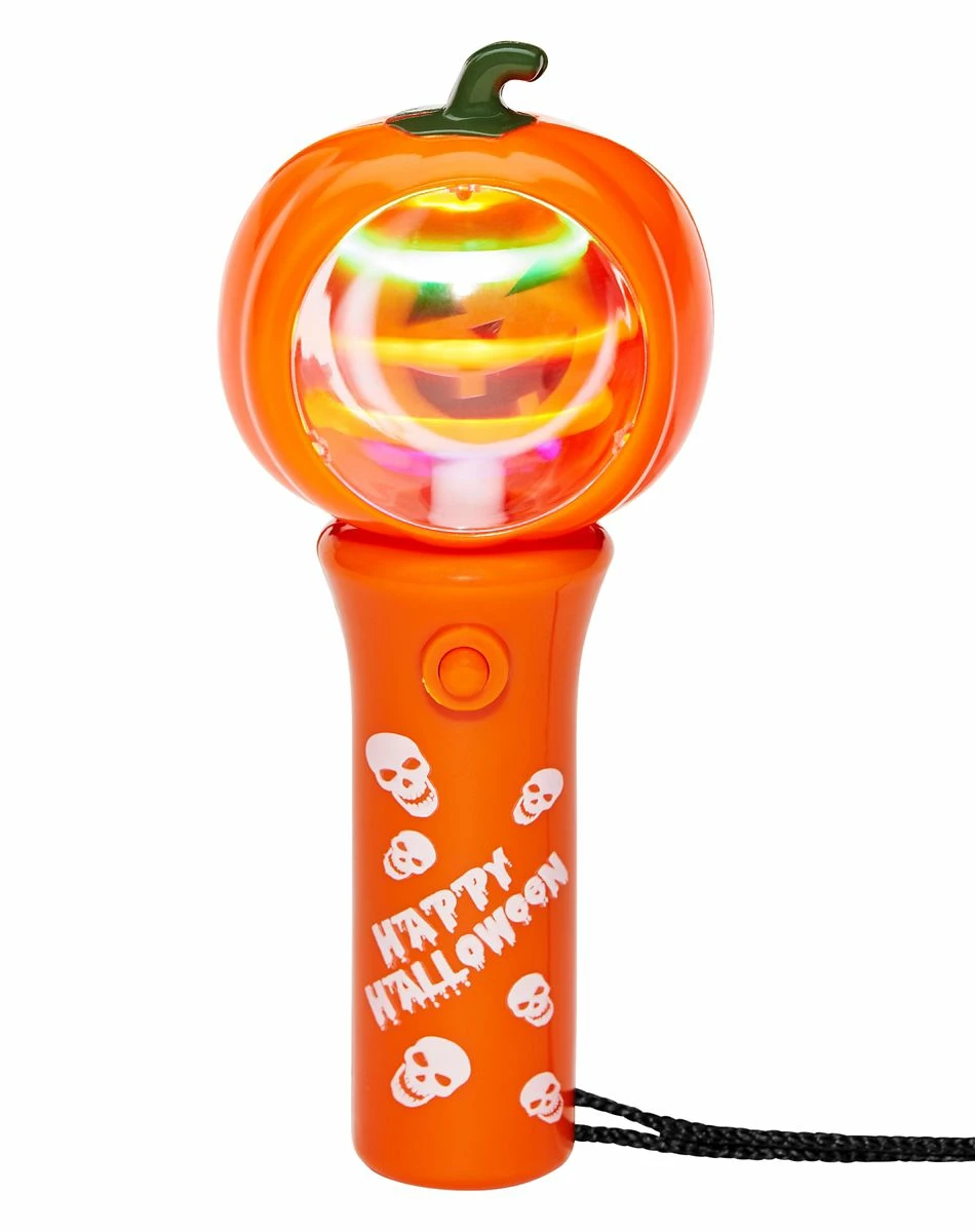 Help your little goblins stay safe with this mini pumpkin light-up spinner! This light-up pumpkin spinner includes an attached lanyard, making it perfect for all-night wear. Create a stunning light show with 5 vibrant LED light colors!