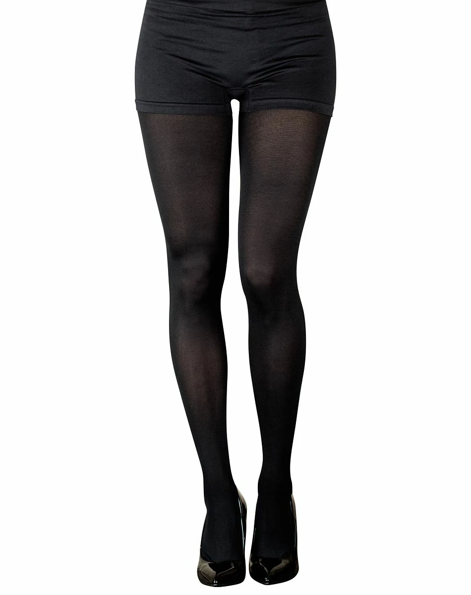 Black is the new black in these Opaque Black Tights. Black out this Halloween in this black 100% nylon Halloween hosiery. Perfect for elegantly adorning the girl in a Coffin Bride Adult Womens Costume, too — available separately.