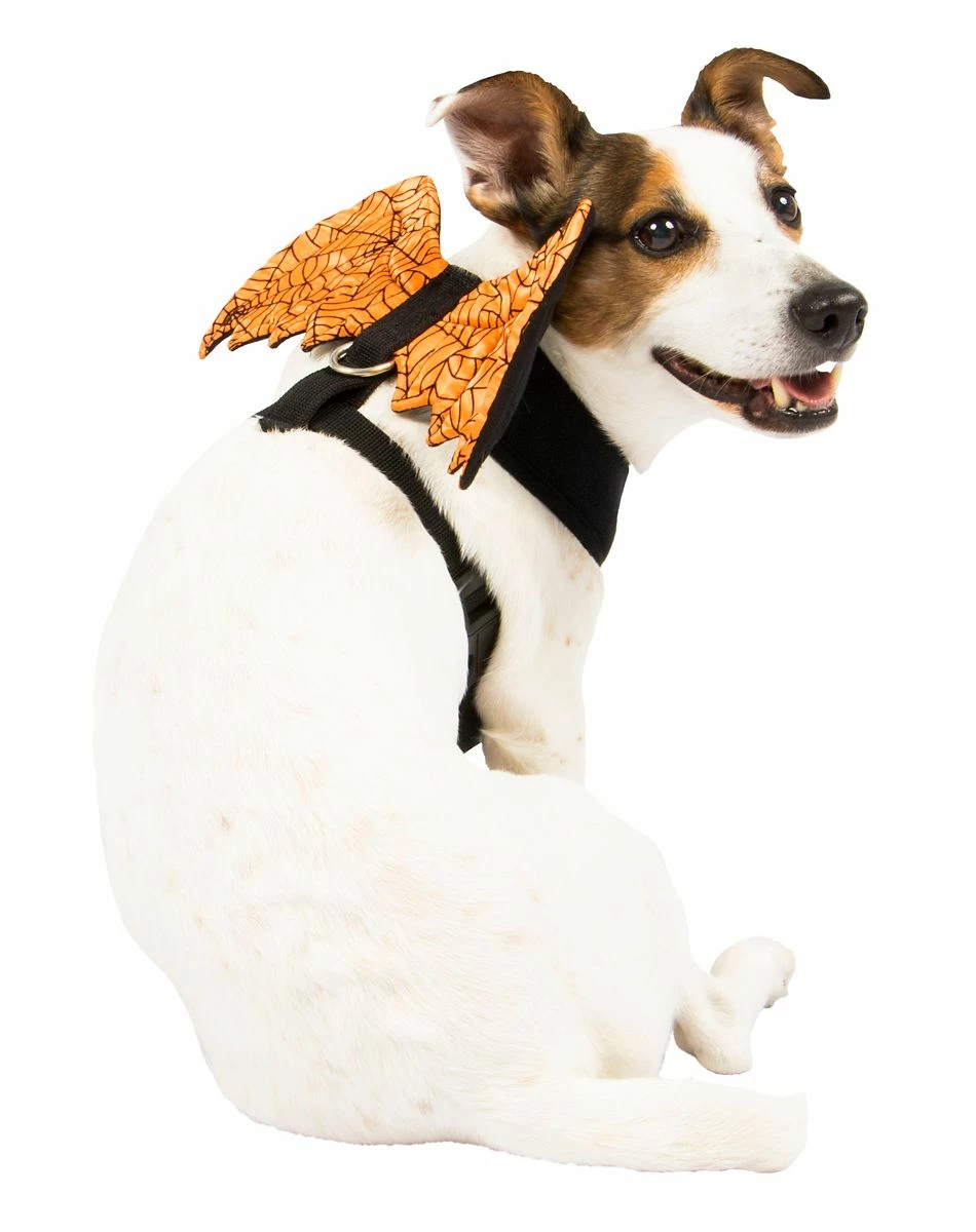 Take your pet out on the town with this fun pet harness! Featuring a pair of orange wings covered in black spiderwebs, your pet will look as though it’s ready to fly away in Halloween style!