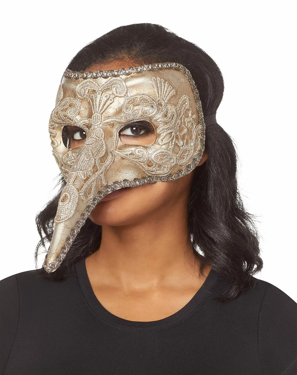 Add some venetian style to your costume this Halloween by accessorizing with this Ornate Venetian Mask. This mask features a long beak design and is sure to keep your identity hidden all night at the next masquerade.