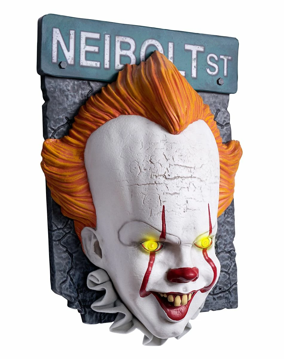 Have your favorite horror movie clown greet guests with this official It Pennywise Door Knocker! Featuring Pennywise with his bright yellow eyes and spooky smile, this scary decoration will let everyone know you’re all about the haunted house effect. Amp up the fear when you hang it from any door and wait for the screams!