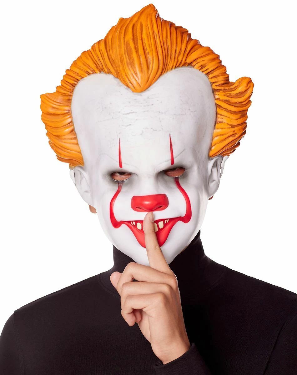 Get ready to haunt the town of Derry, Maine this Halloween when you complete your Pennywise costume with this officially licensed Pennywise Half Mask. This creepy clown mask looks just like Pennywise in the film and with his creepy red clown makeup, red clown hair, and sinister looking smile. You’ll be ready for all types of crazy clown shenanigans while wearing this mask on Halloween.