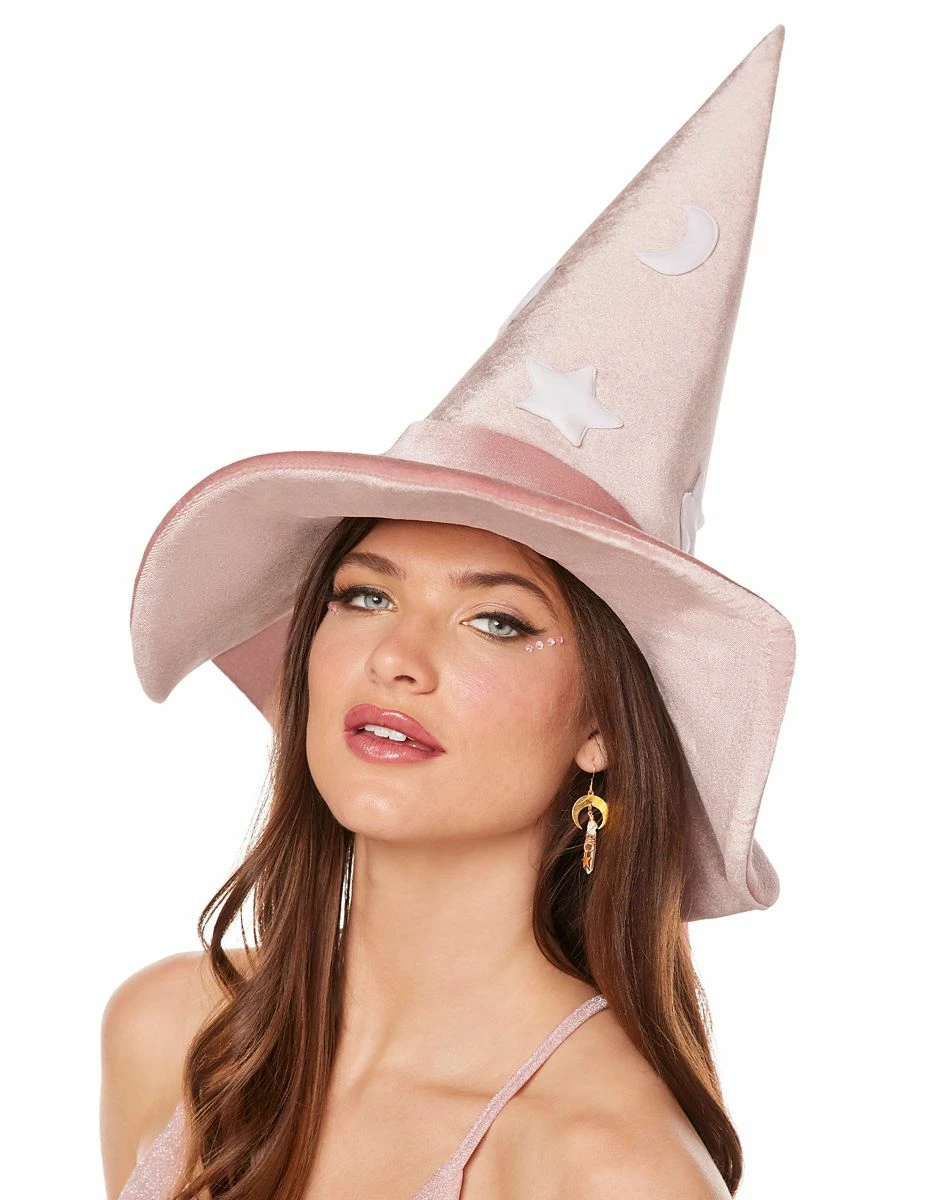Take flight into the most enchanting Halloween of your life with this Pink Celestial Witch Hat! This hot pink witch hat, which is adorned with white stars and moons, is sure to make you stand out among the other witches on Halloween night. Get into some toil and trouble with this colorful hat completing your witch ensemble!