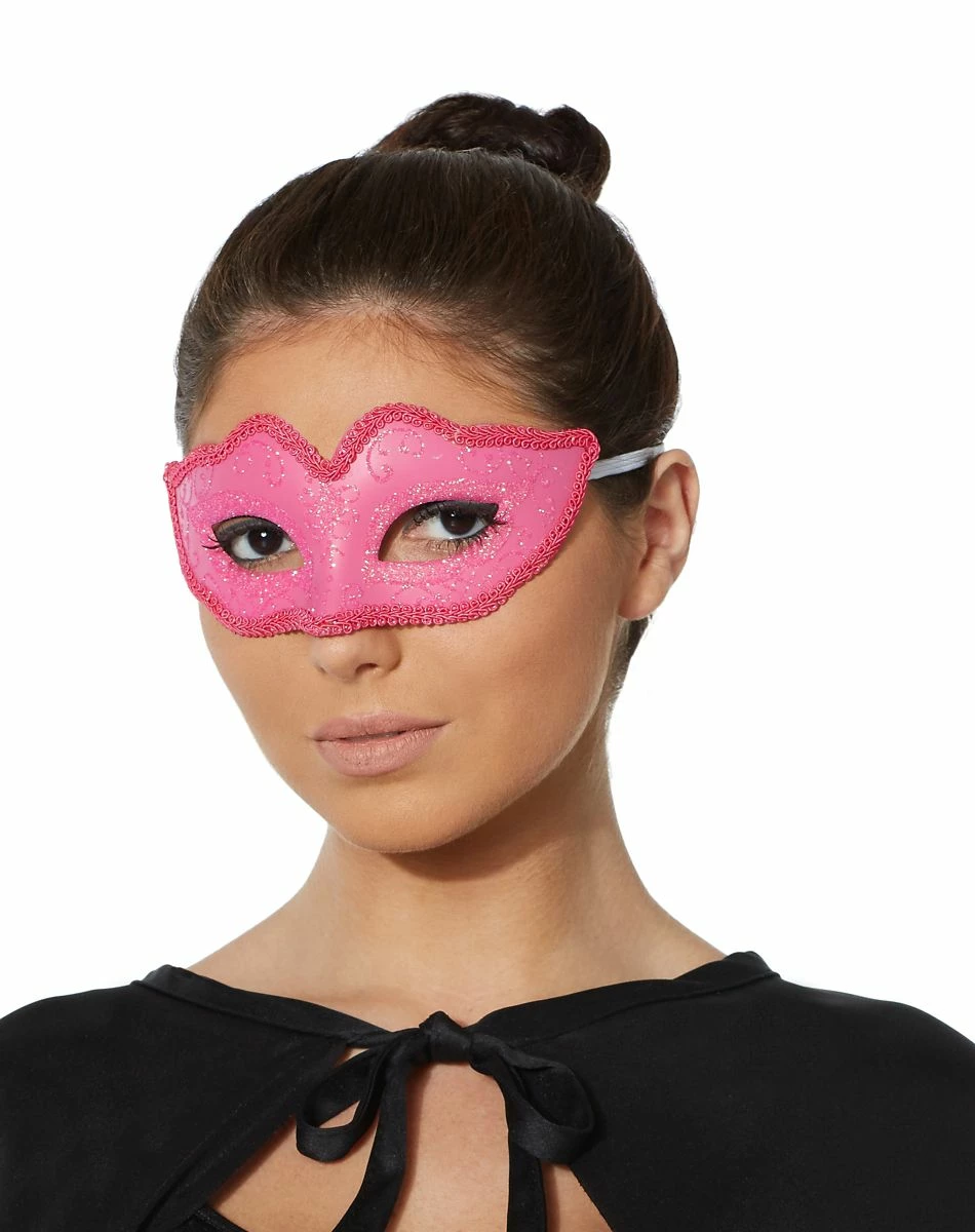 Be pretty and proper in this elegant pink Venetian mask! This mystifying masquerade mask will help you look cool and classy with its glitter details and ribbon piping! It’s sure to make your costume stand out from the rest!