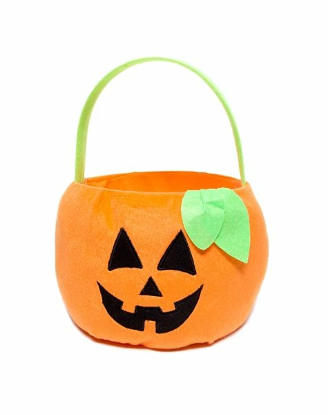 Collect your goodies with a Halloween classic by using this Pumpkin Plush Bucket! The plush bucket takes on a orange pumpkin shape with a black jack-o-lantern face and green handle. When you use this trick-or-treating bucket, your candy will be safe as you walk around the neighborhood!