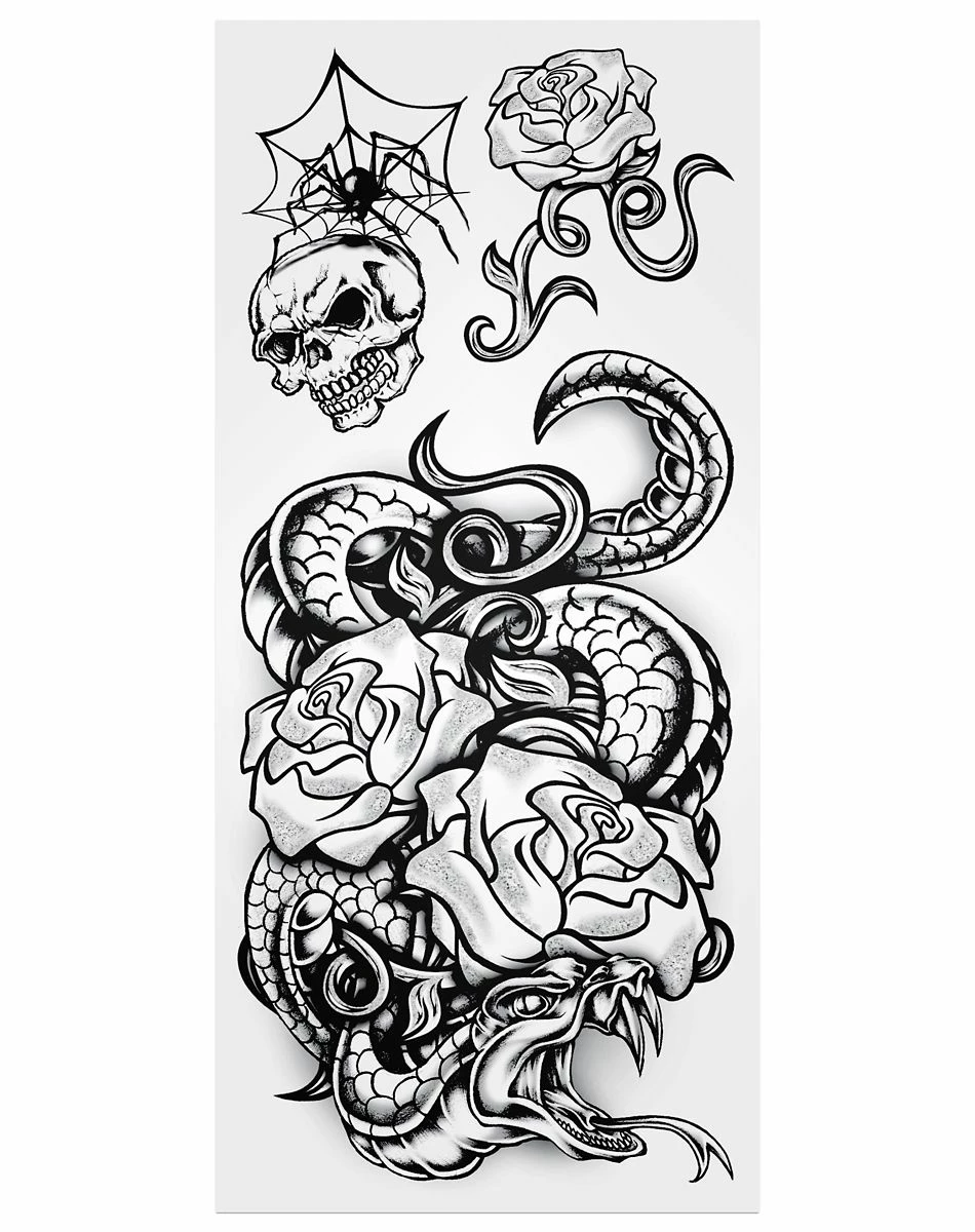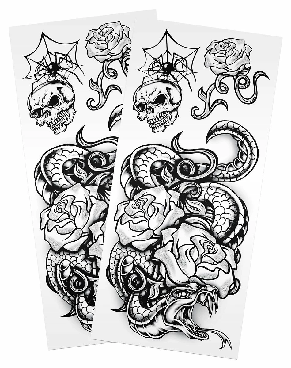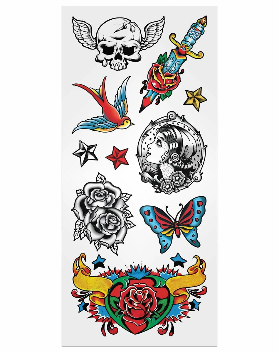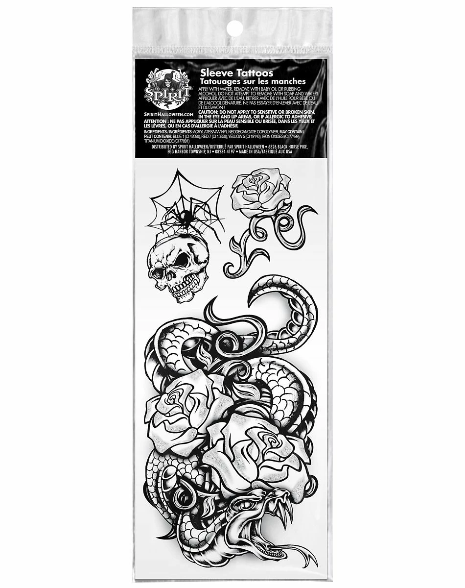 Express yourself and your rocker attitude by applying these punk sleeve tattoos to your body this Halloween. This pack comes with various punk style tattoos so you can get all tatted up and customize your very own hardcore sleeve.