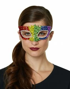 Why choose just one color when you can rock them all at once? This Rainbow Diamond Eye Half Mask features rainbow teardrop gems in a captivating array colors. Featuring an elastic band, this mask will stay comfortably in place while you dance the night away!