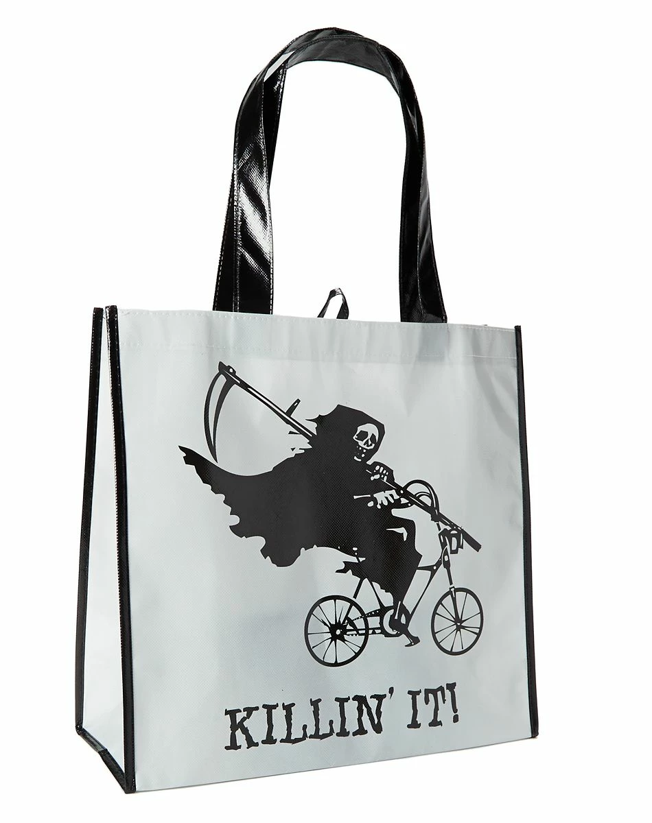 Reap some sweet rewards this Halloween by stashing your trick or treat sweets in this Killin’ It tote. Slay it this Halloween!