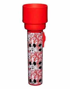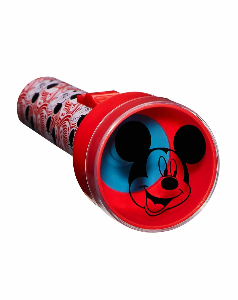Illuminate your path with this Mickey Mouse handheld projector! This red Mickey Mouse projector is adorned with eye-catching graphics featuring everyone’s favorite mouse. Cast an image of Mickey’s smiling face on any flat surface!