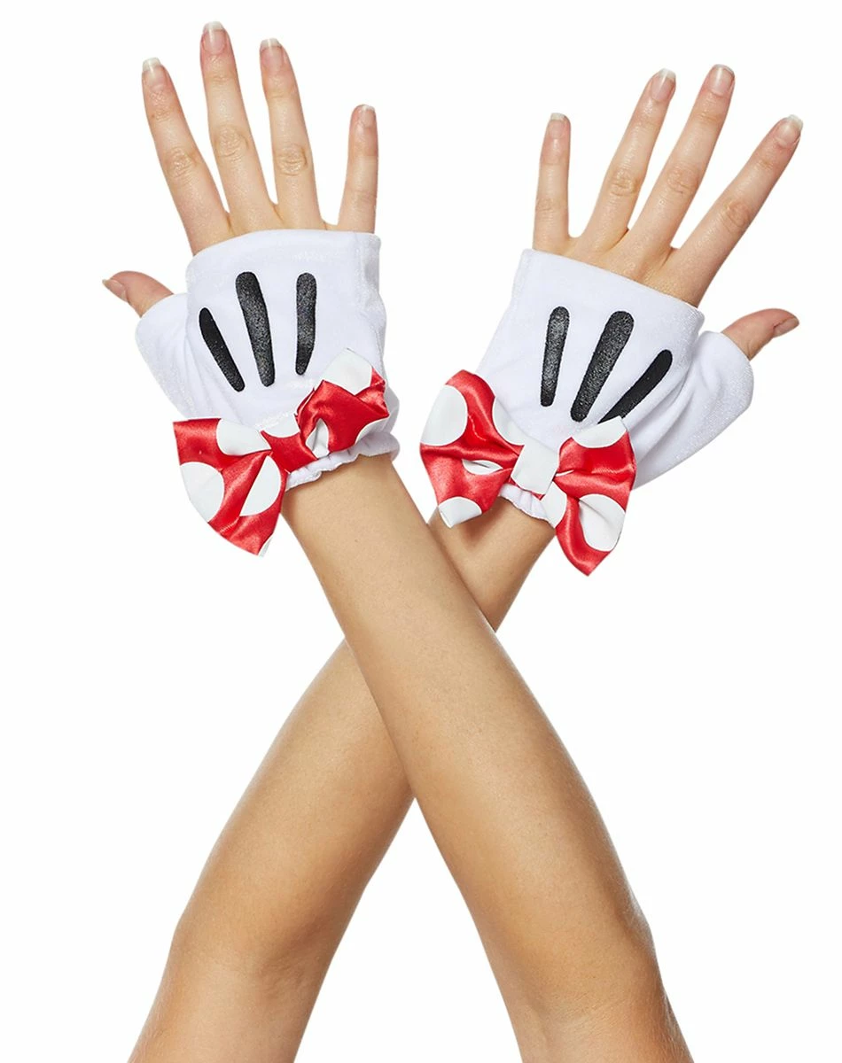 Finish off your Minnie Mouse look with the Officially Licensed Red Minnie Adult Gloves. These adorable glovelettes allow you to show off a cute red manicure and grab candy without getting your gloves dirty. The cute red and white polka dot bow will match your dress perfectly.