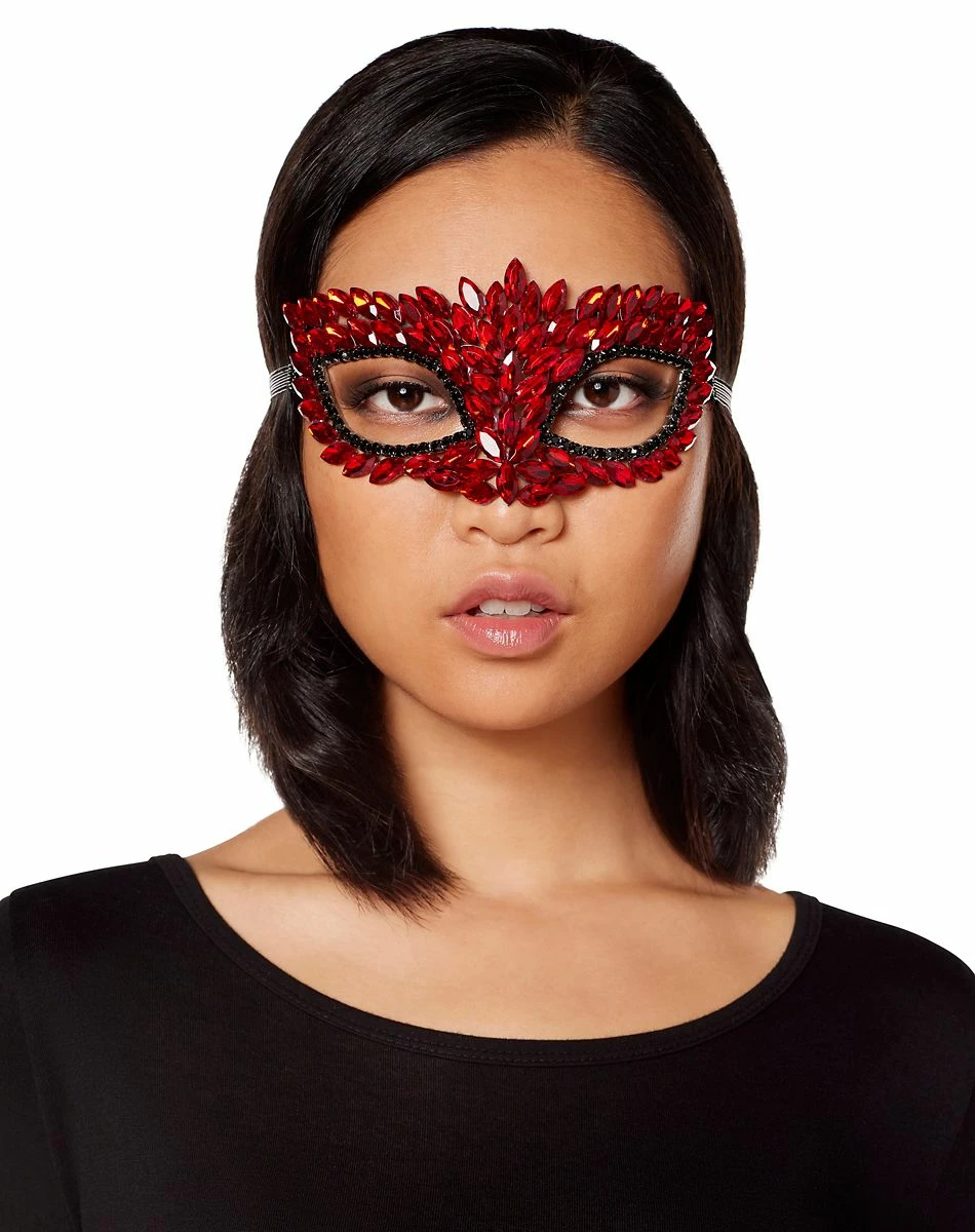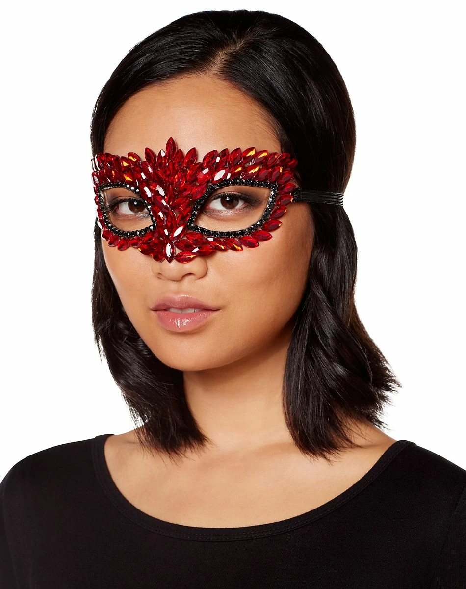 Marquise-style red rhinestones adorn this stunning eye half mask. You’ll turn heads all night long when you wear this ravishing red rhinestone mask.