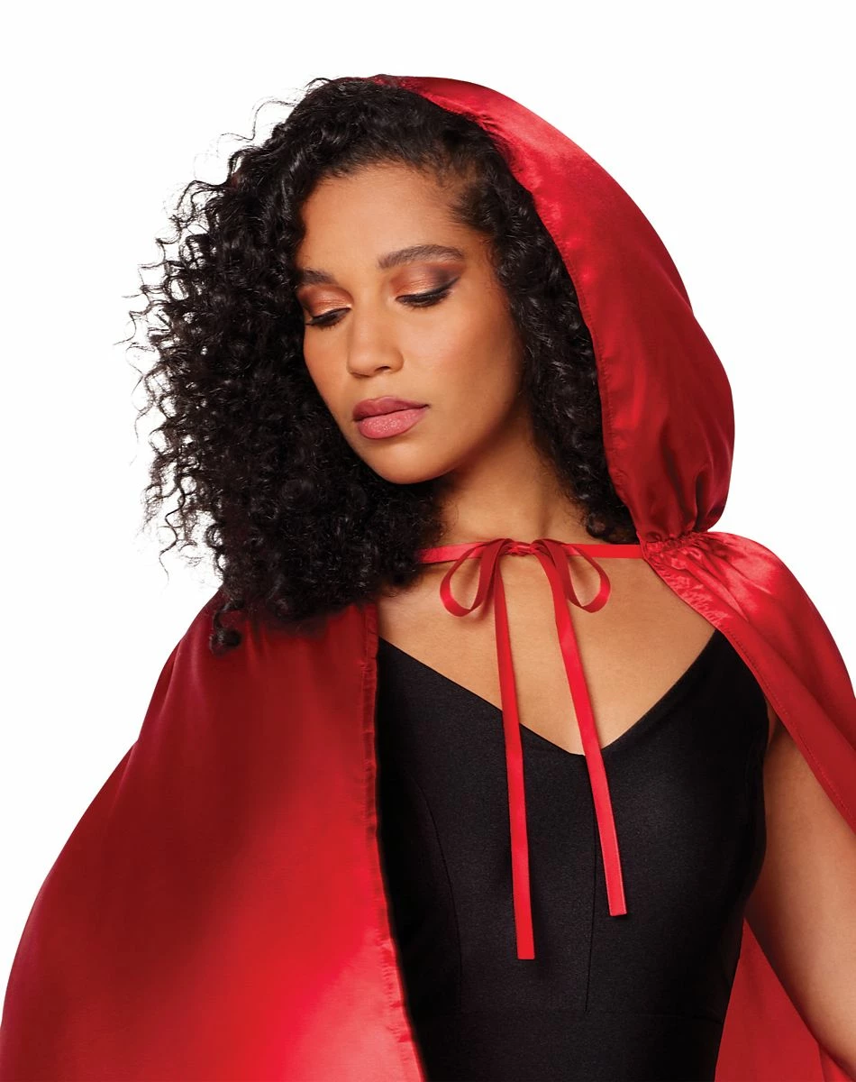 Beware the wolf in the woods or shield yourself from the sunlight in this Red Satin Hooded Women’s Cape! The satin floor-length cape ties around the neck and can add some mystery to your identity when you keep the loose hood up. Perfect accent to a little black dress or vampire costume (sold separately) this Halloween!