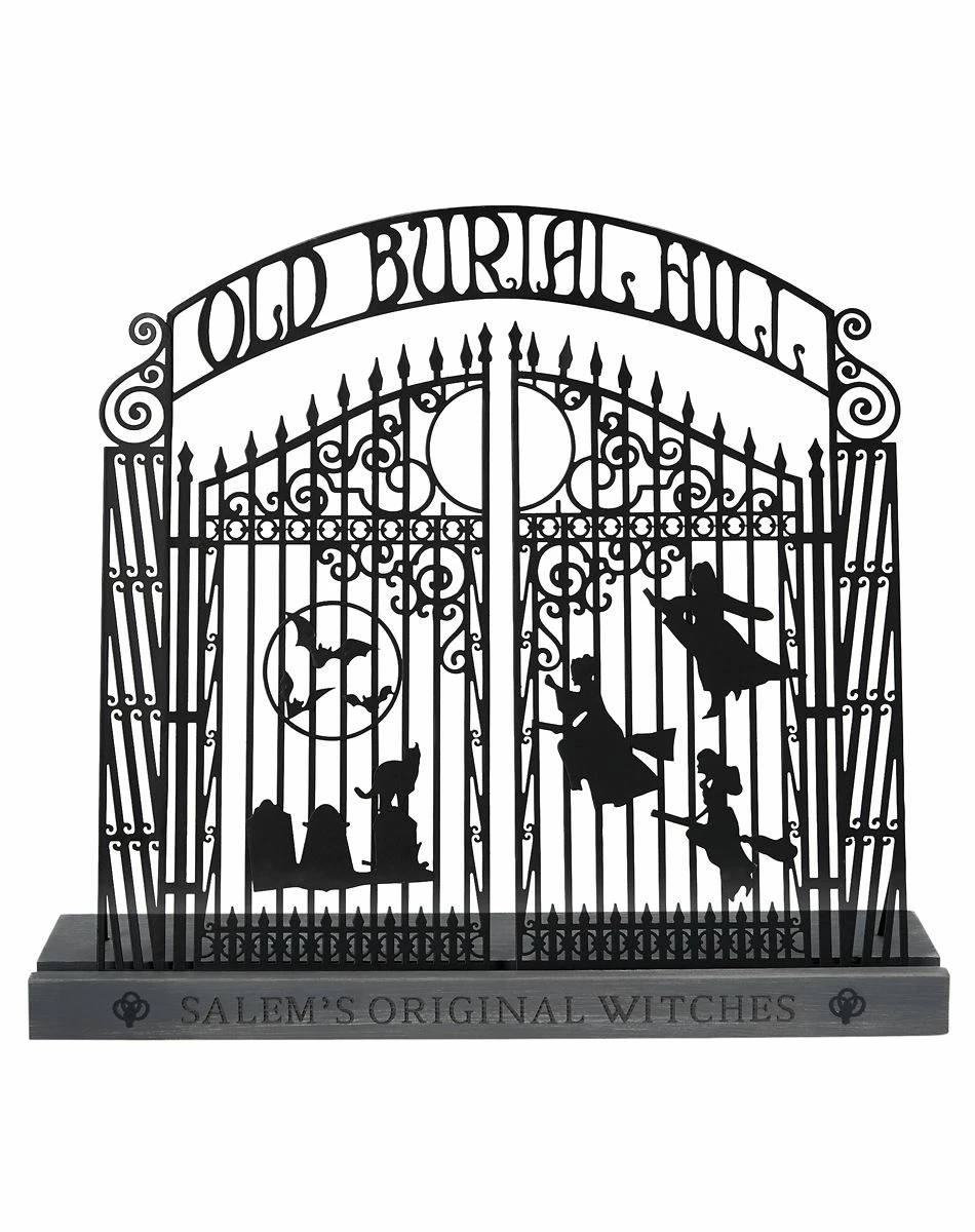 This beautifully crafted Hocus Pocus sign will show everyone who Salem’s original witches were. Sporting the gates of Old Burial Hill, this table top decoration is a must-have.
