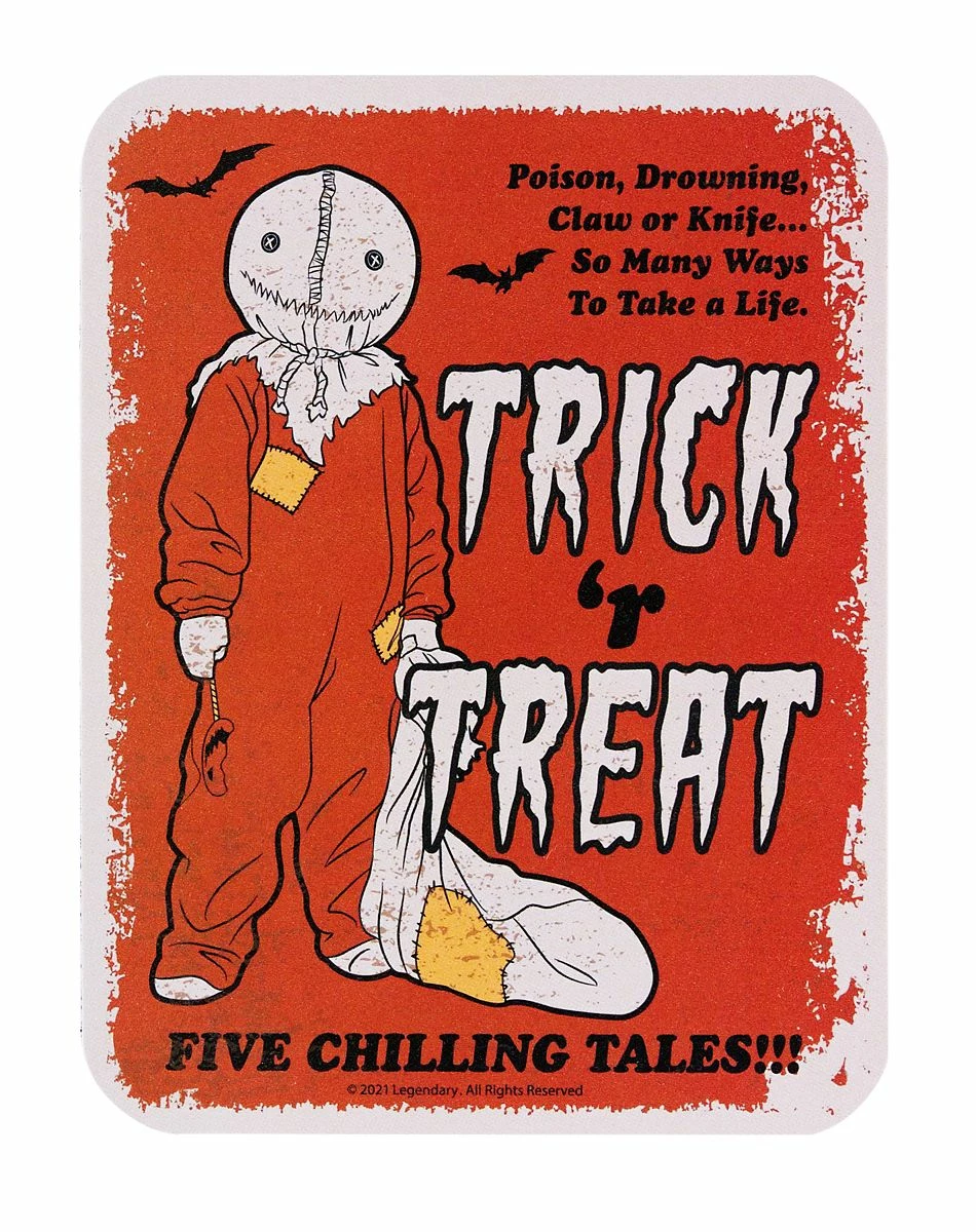 Show off your favorite horror movie with this official Trick ‘r Treat Sam Rules of Halloween magnet! This fun magnet is the perfect way add some Halloween fun to your fridge.
