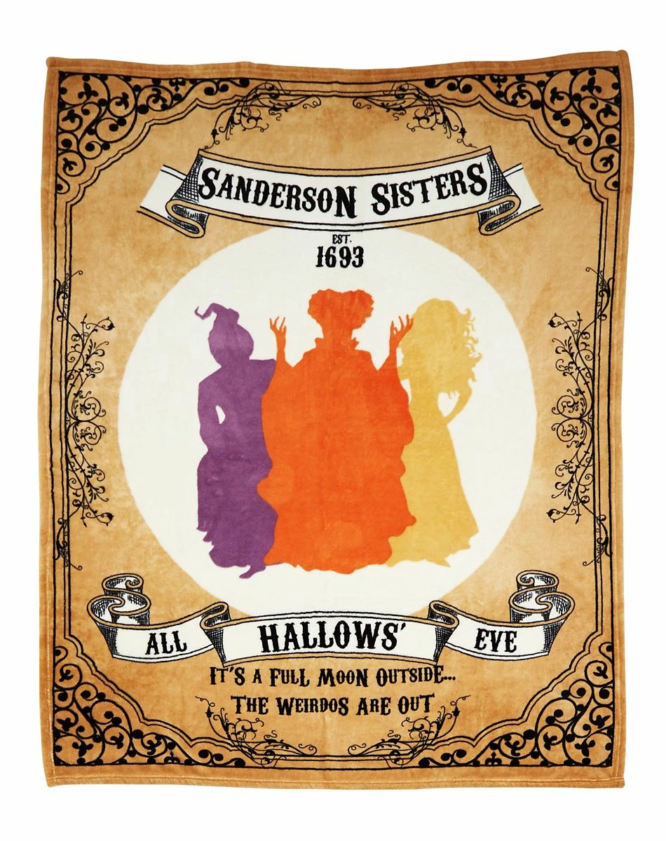 The Sanderson Sisters have returned this Halloween, but this time they’ve conjured up something cozy! This soft, fleece blanket features the silhouettes three Sanderson sisters wearing their signature colors, surrounded with intricate black patterning over a tan background. Adorned with a classic quote from the movie, this is the perfect addition to the home of any Hocus Pocus fan!