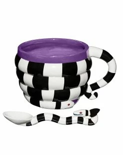 Enjoy a hot serving of spooky soup with this officially licensed Beetlejuice soup mug and spoon set! This wide molded mug features an ornate sandworm handle and a matching spoon.
