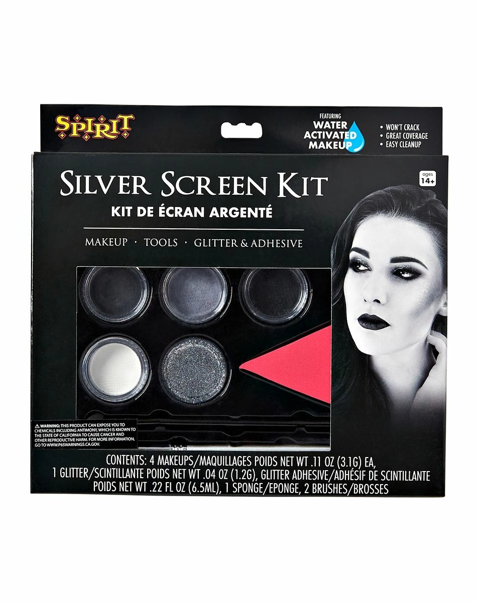 Create the look you’ve been dying for when you use this silver screen makeup kit! The kit includes four water activated makeup colors, so you can turn your face into a canvas!
