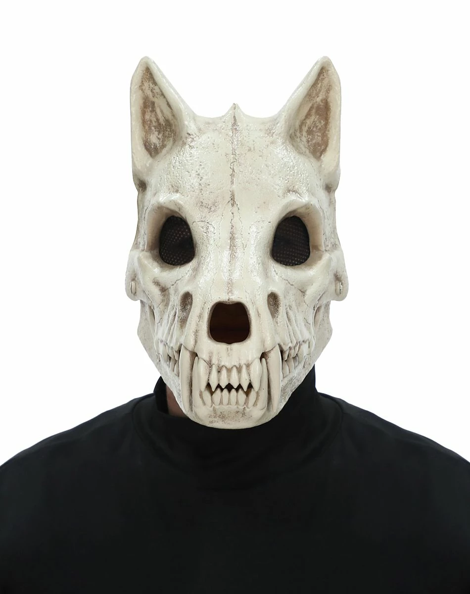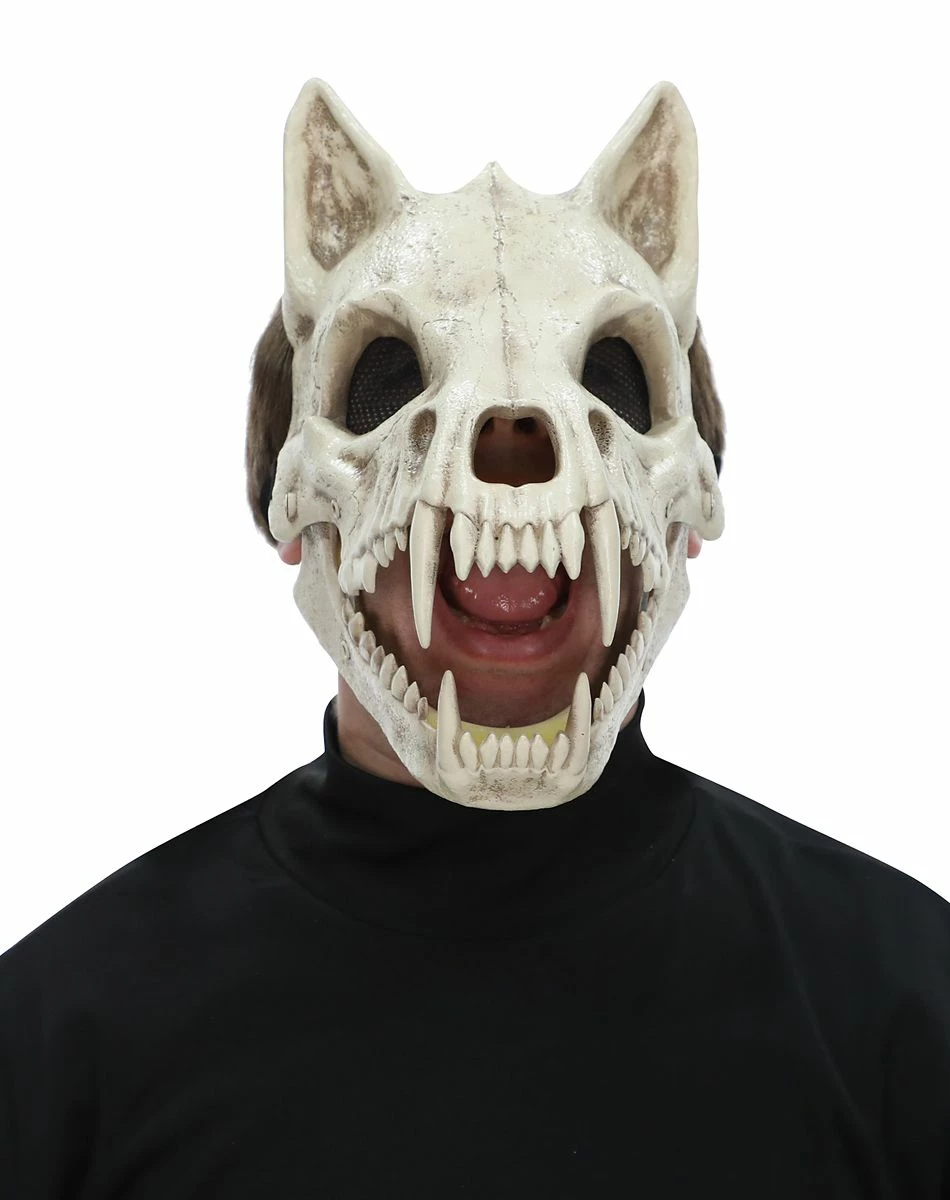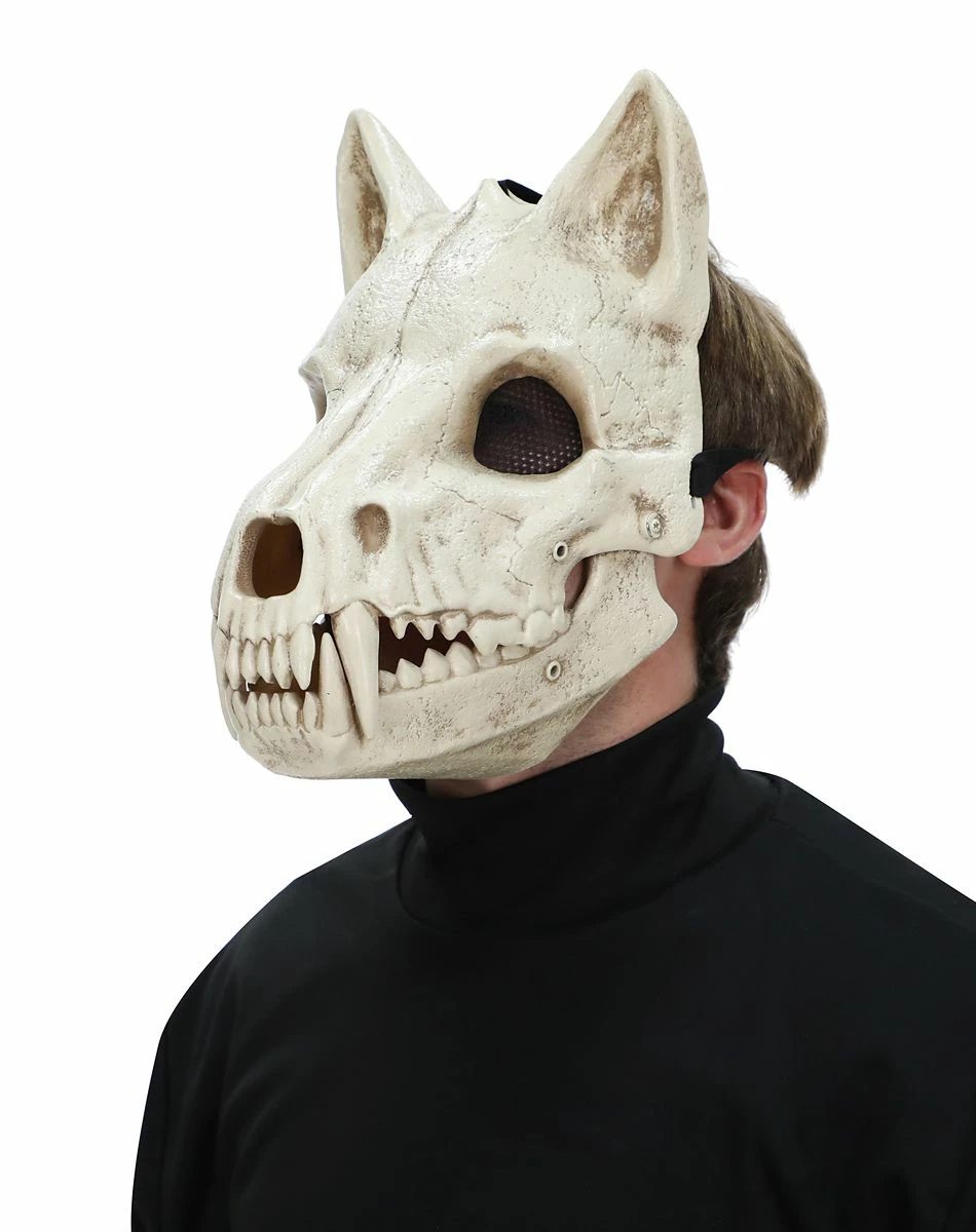 Avoid the full moon this Halloween while wearing this Skeletal Wolf Half Mask or you might just go rabid! This awesome skeletal wolf mask features a hinge in the jaw so the mouth actually opens and closes when you speak and is perfect for spooking your friends.