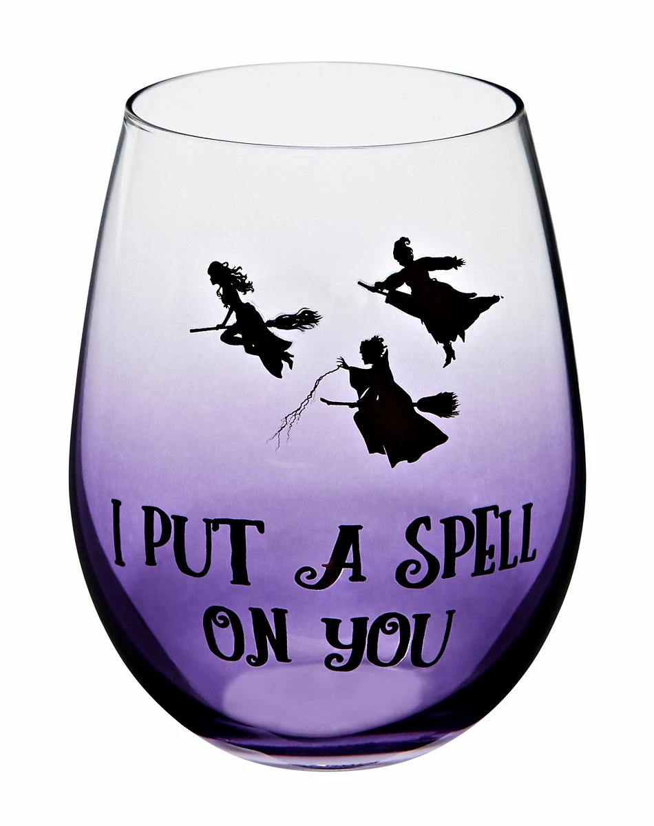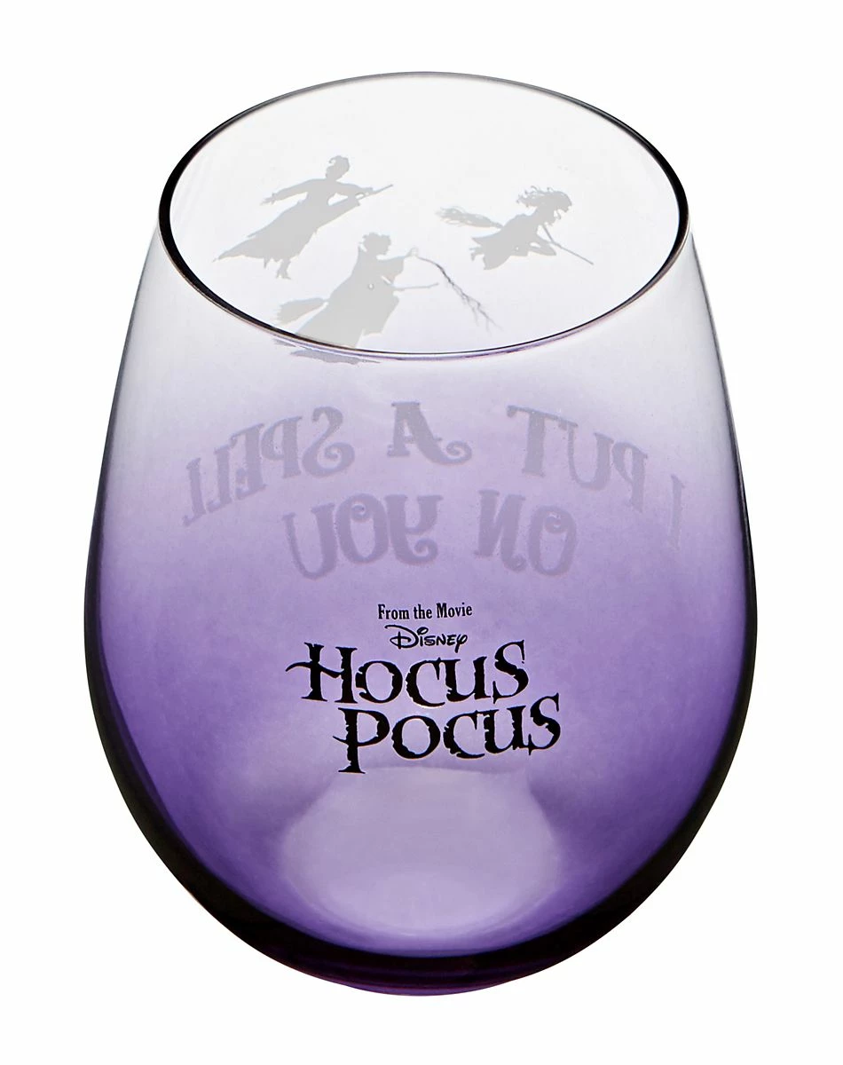 Drink up like a Sanderson Sister would this Halloween with this Spell On You Stemless Glass. This purple glass can fit up to 22 oz. and features silhouettes of the three sisters Winifred, Mary, and Sarah riding through the night on their brooms. Better drink up quick, before someone casts a spell on you next!