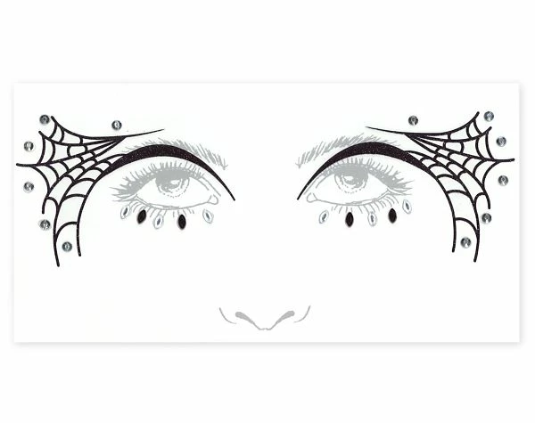 Catch everyone with your eyes accented by the Spider Web Face Decal. The black webbing design rests besides eyes with glittering detail.