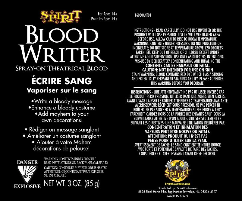 Add a touch of horror to any costume or decorations with this theatrical spray-on blood. Whether you’re trying to scare your neighbors or just want to have some frightful fun, this spray on blood is perfect for almost any scary occasion!