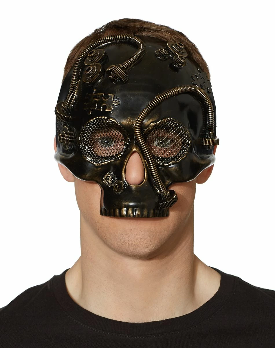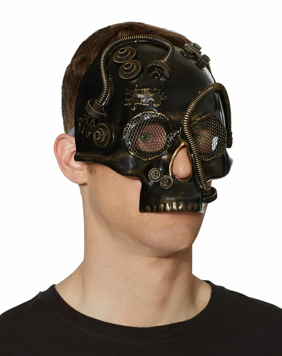 Bring some vintage terror to your Halloween wear with this spooky steampunk skull mask! This vicious and vintage mask features rusted gear, puzzle, and valve details, and even mesh eye sockets for a look that is sure to bring all sorts of steampunk scares! You’ll be terrifying in any time period!