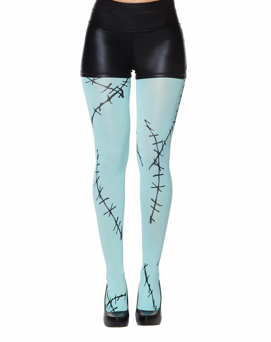 Looked stitched and stylish and finish off your Sally costume when you wear the officially licensed tights. This pair of blue, nylon and spandex tights features stitched graphics perfect for joining Jack on his quest to capture Christmas!