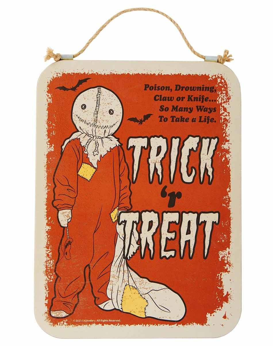 Add a terrifying accent to your wall and let everyone know that Trick ‘r Treat is your favorite horror movie when you hang up this officially licensed Take A Life Sam Sign! This sign features an image of Sam and a creepy message that will give trick-or-treaters a real scare this Halloween.