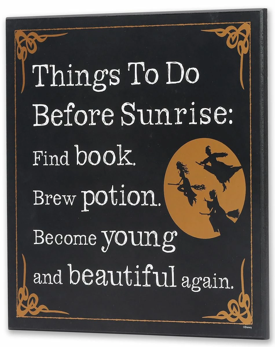 Get your home looking Halloween ready by adding this Hocus Pocus To Do List Sign to your home decor. This officially licensed sign features a Sanderson Sister to do list of all the things to do before the sun comes up and is perfect for showing your love for Hocus Pocus.
