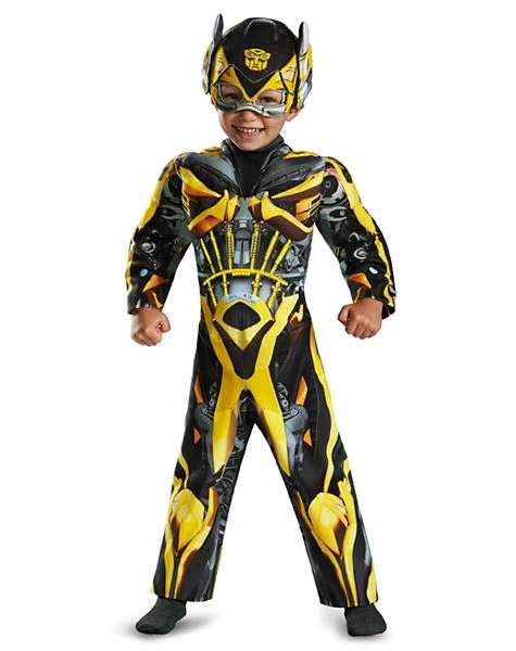 Blast away your enemies in the Transformers Bumblebee Light-Up Toddler Costume. This yellow, black and silver muscled jumpsuit with matching headpiece has light up arms, like the headlights of Bumblebee’s Camaro form, allowing for maximum night vision capabilities.