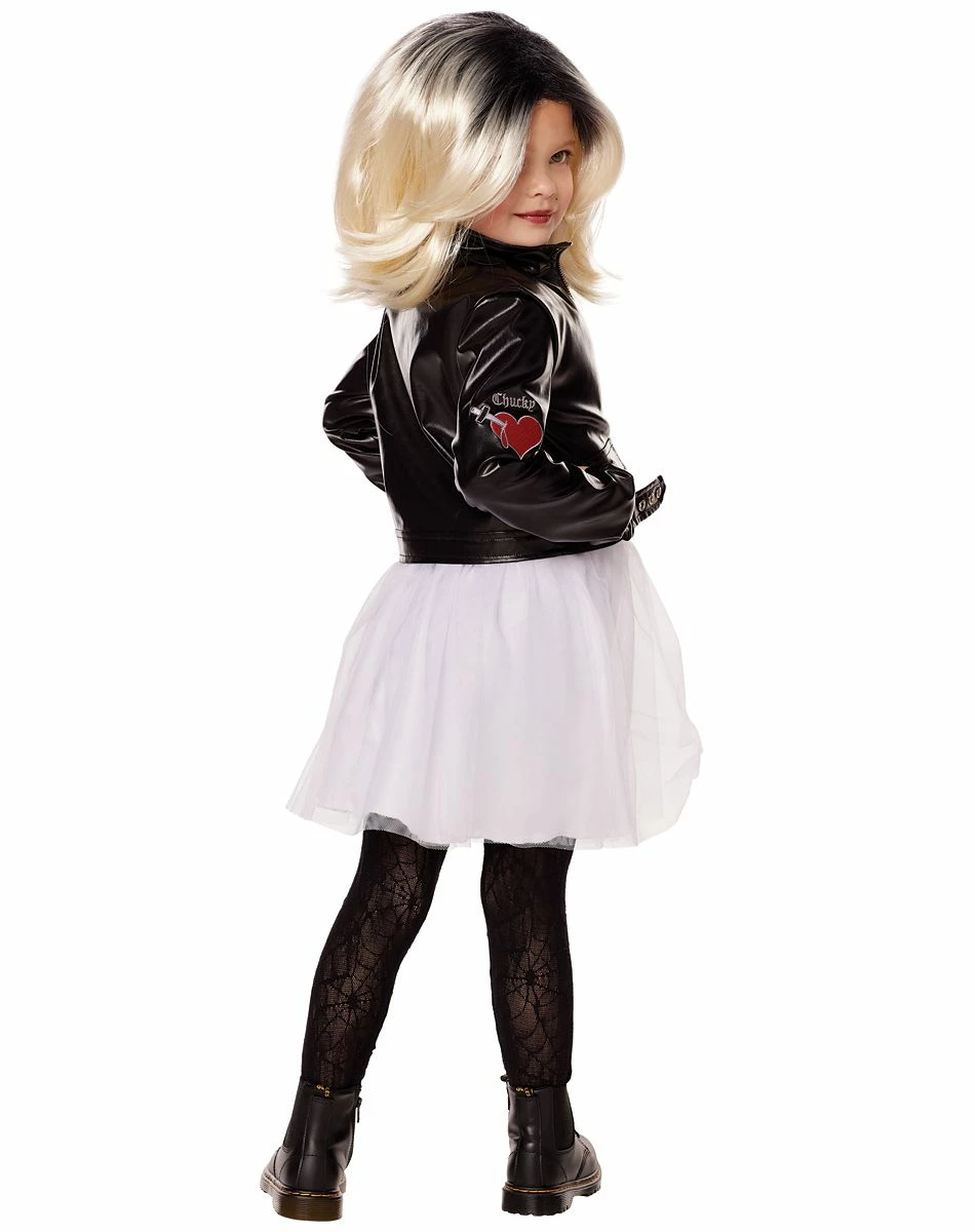 Your toddler will look terrifyingly cute on Halloween night when they suit up as Tiffany, the Bride of Chucky! This officially licensed costume includes a white dress, a faux leather black jacket, a wig, and a choker necklace that reads “Tiff.” Your little one will look so adorable, it’s scary!