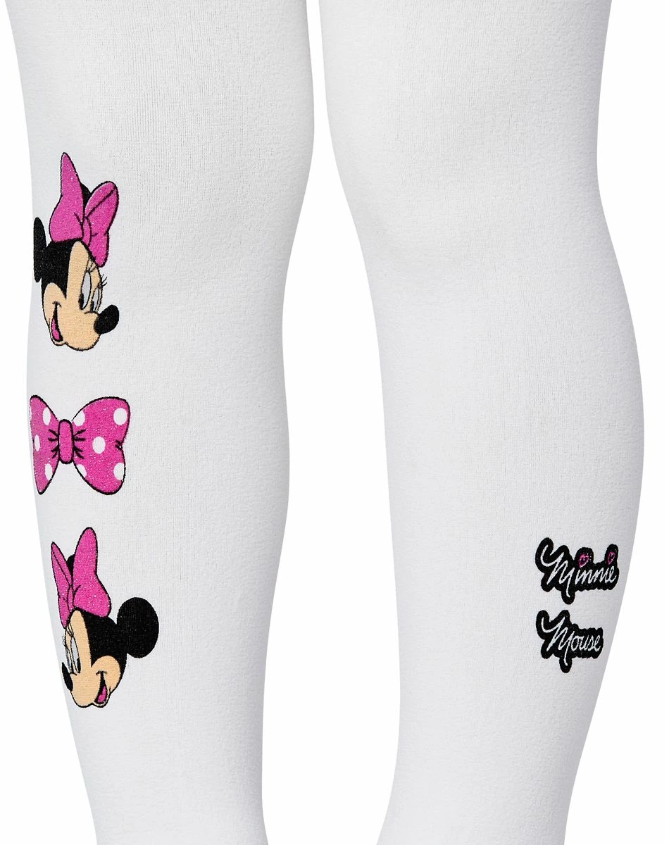 Your little one will look totally adorable in these official Toddler White Minnie Mouse Tights! These tights have two images of Minnie Mouse’s face and one of her familiar pink bow on one leg and her name on the other. Wear these tights as part of a costume or with any outfit for the perfect addition of Disney style.
