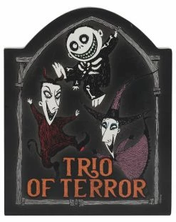 Get ready to experience some mischief this Halloween when you decide to decorate with this officially licensed Trio of Terror Table Topper. This piece of décor features your favorite trio from The Nightmare Before Christmas Lock, Shock, and Barrel, and is a great way to add some Halloween Town style to any room.